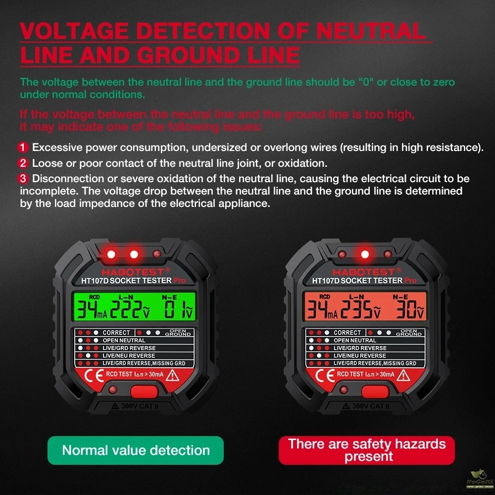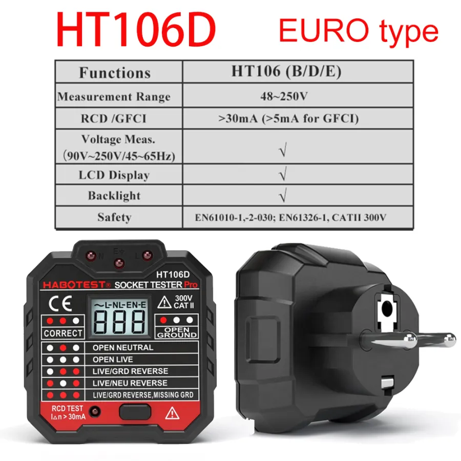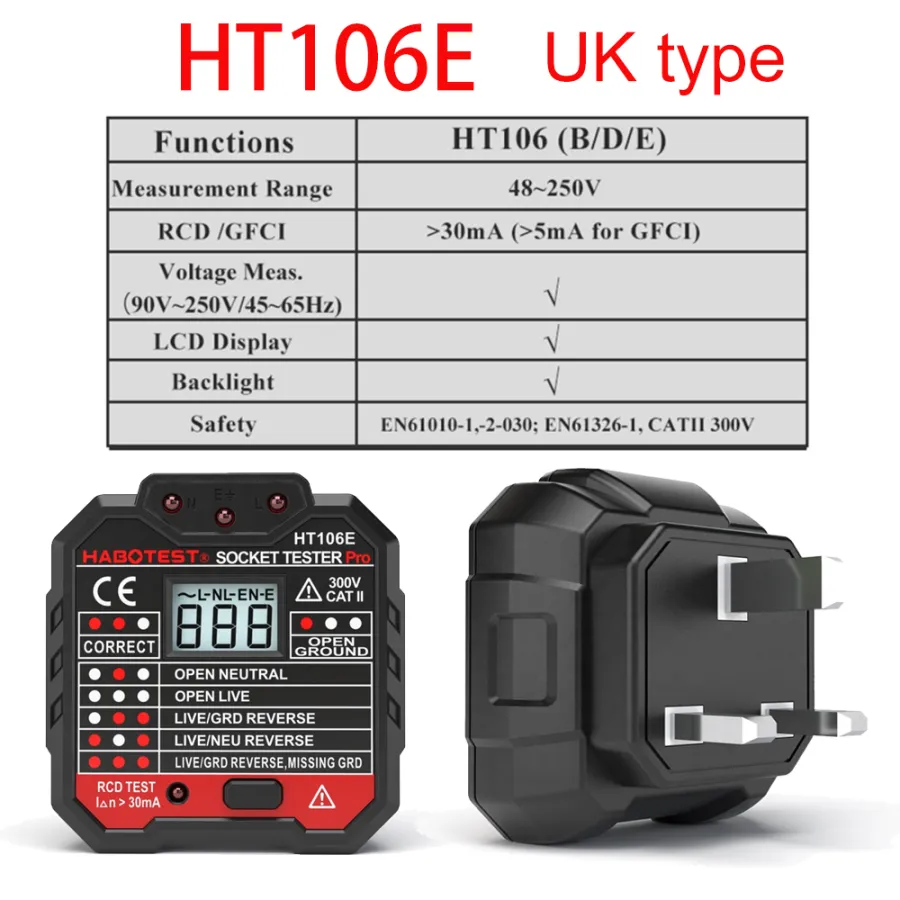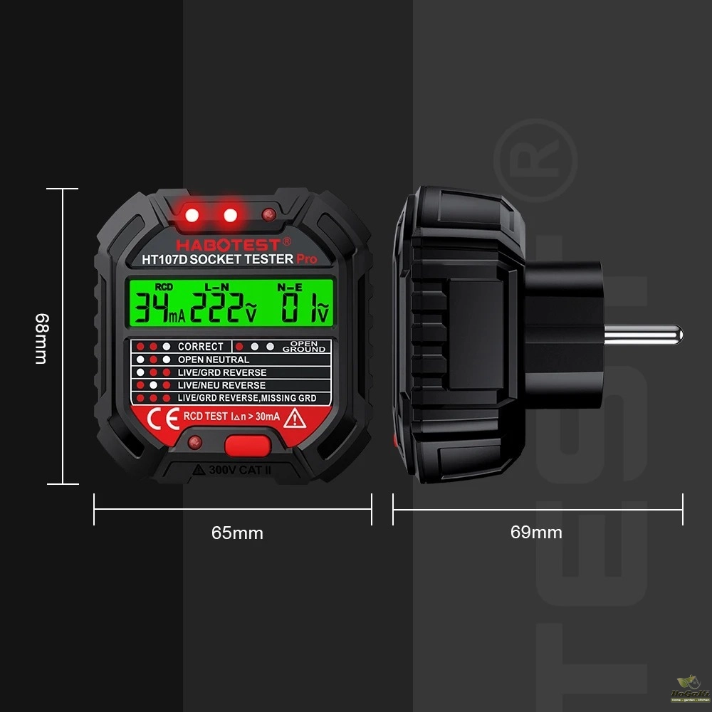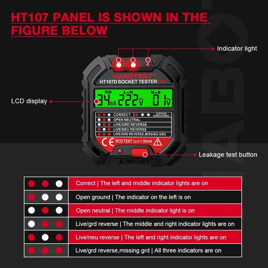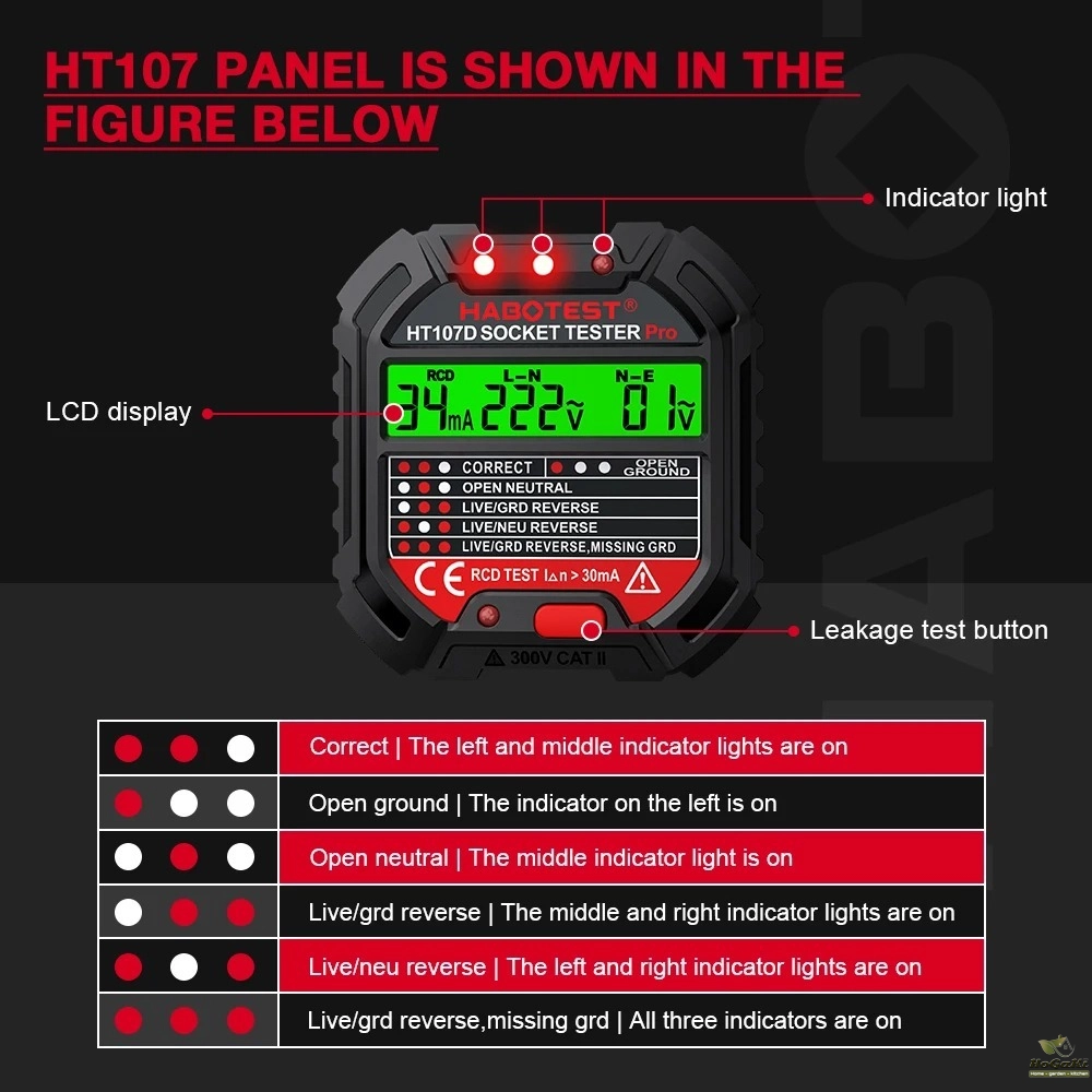 • Easy to Use :The HABOTEST HT107 Socket Tester Pro Voltage Test RCD 30mA Socket Detector is user-friendly and easy to use, even for those who are not experienced in electrical work.