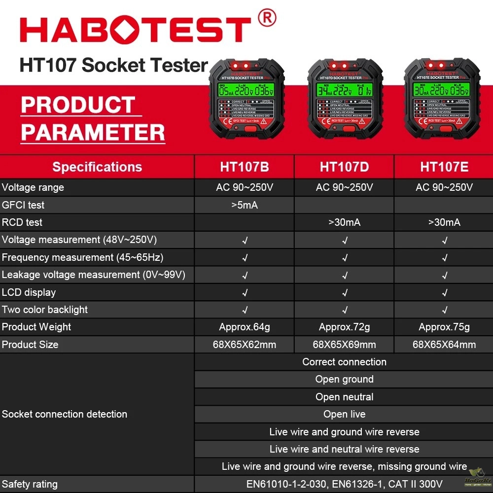 • Customizable :The HABOTEST HT107 Socket Tester Pro Voltage Test RCD 30mA Socket Detector is customizable to fit your specific needs, making it a versatile tool for any electrician.