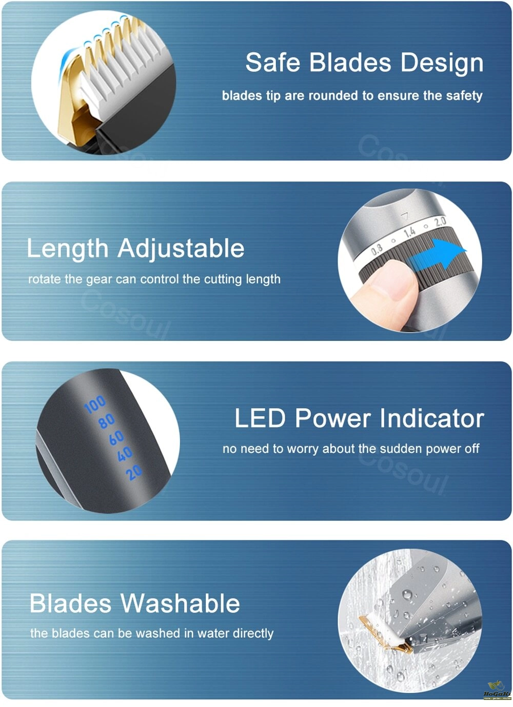 • Stainless Steel Blade :The hair clipper comes with a durable stainless steel blade that can easily cut through hair of different thicknesses.