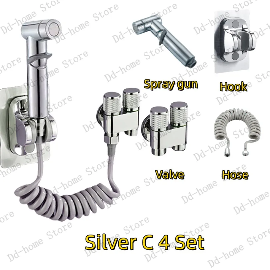 Handheld Bidet Sprayer Set Stainless Steel Spray Gun Shower Handheld Toilet Bidet Faucet Sprayer Shower Nozzle Self Cleaning