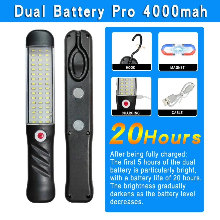 • Rechargeable and Portable :With USB 5V rechargeable functionality, this work lamp is portable and can be charged using any USB-compatible device such as a car, computer, or power bank.