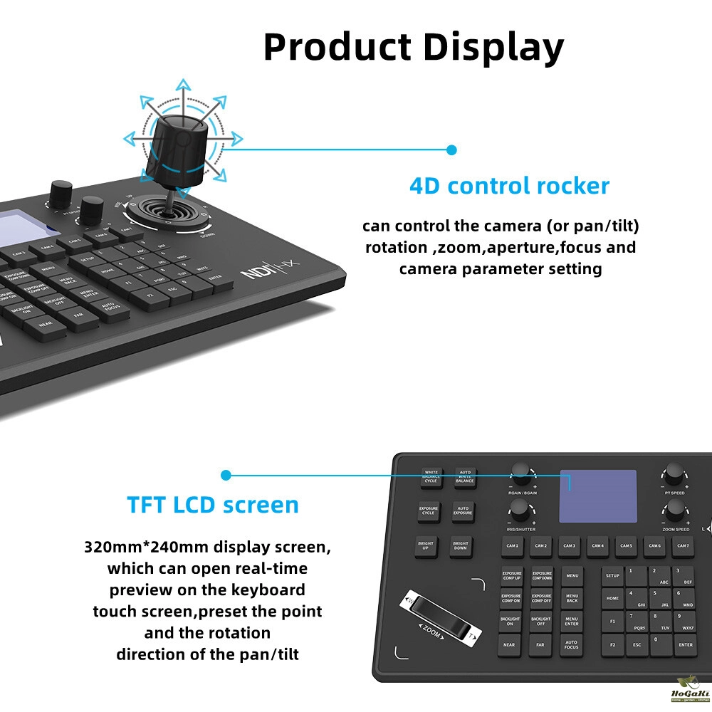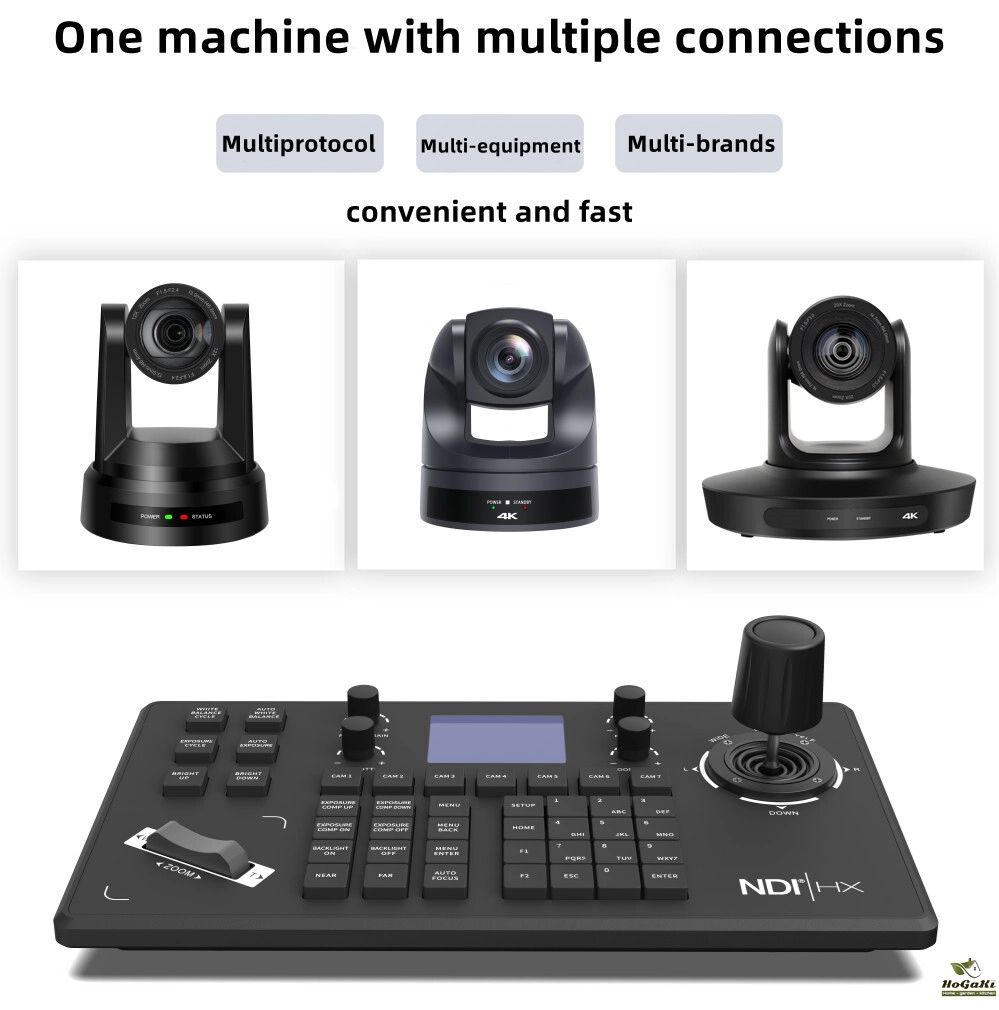 Prisual PTZ Camera controller PoE NDI Camera controller keyboard with 4D joystick for live church meeting,RS232 RS485 LCD screen