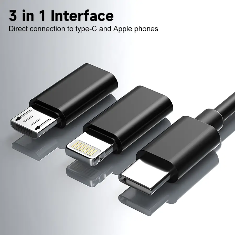 3 PCS interface for IOS Iphone,TYPE-C Iphone,Micro USB Android Phone and TYPE-C Android Phone.