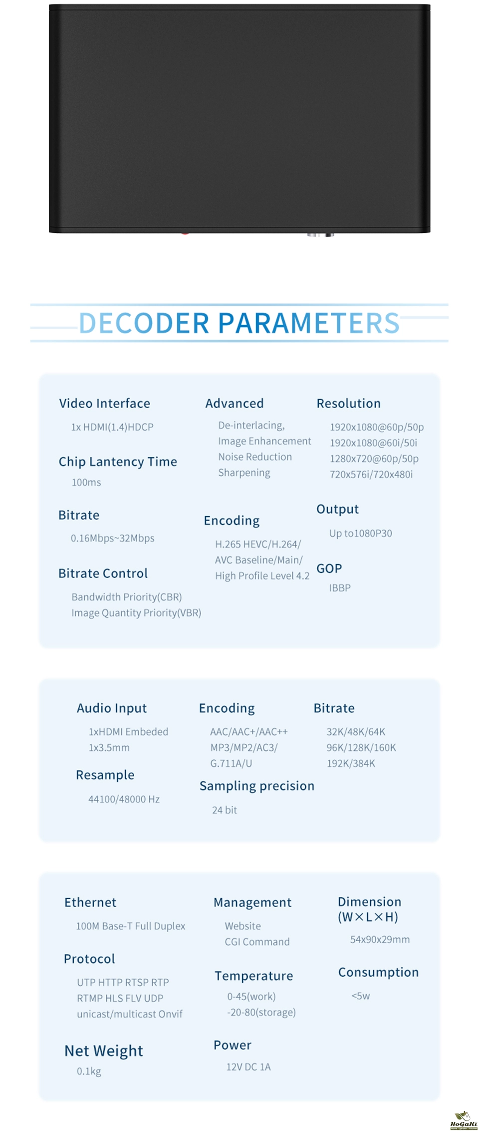 Resolution | 1920x1080@60P/50p,1920x1080@60i/50i/1280x720@60p/50p 720x576i/720x480i |