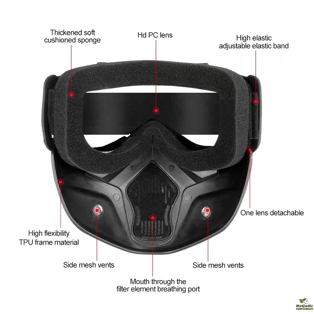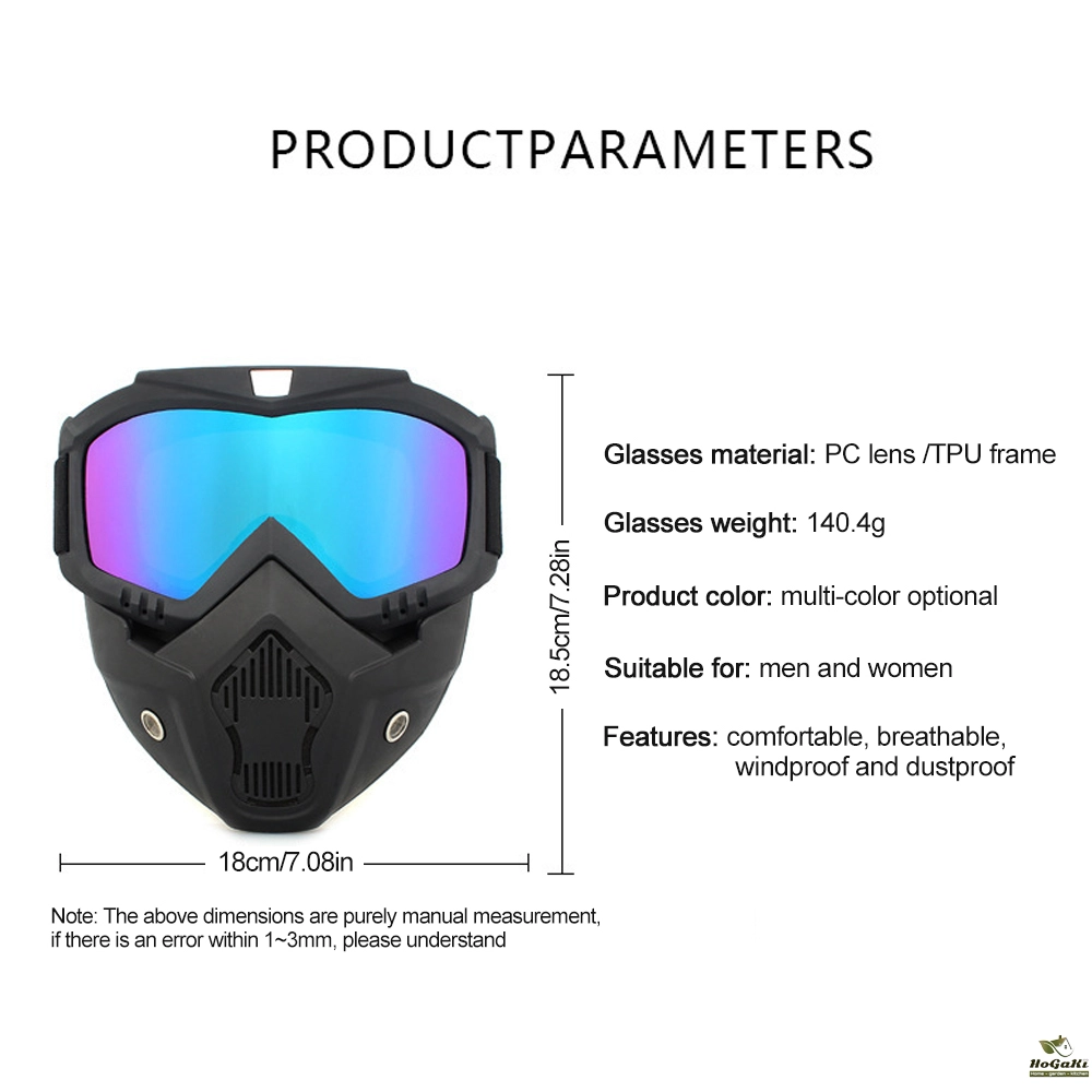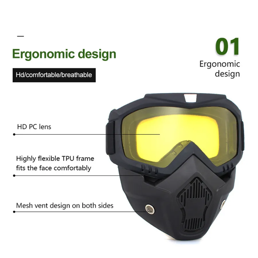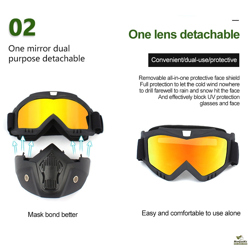 2. Detachable design, goggles and mask can be removed according to the use of needs; frame made of high elasticity engineering resin material TPU