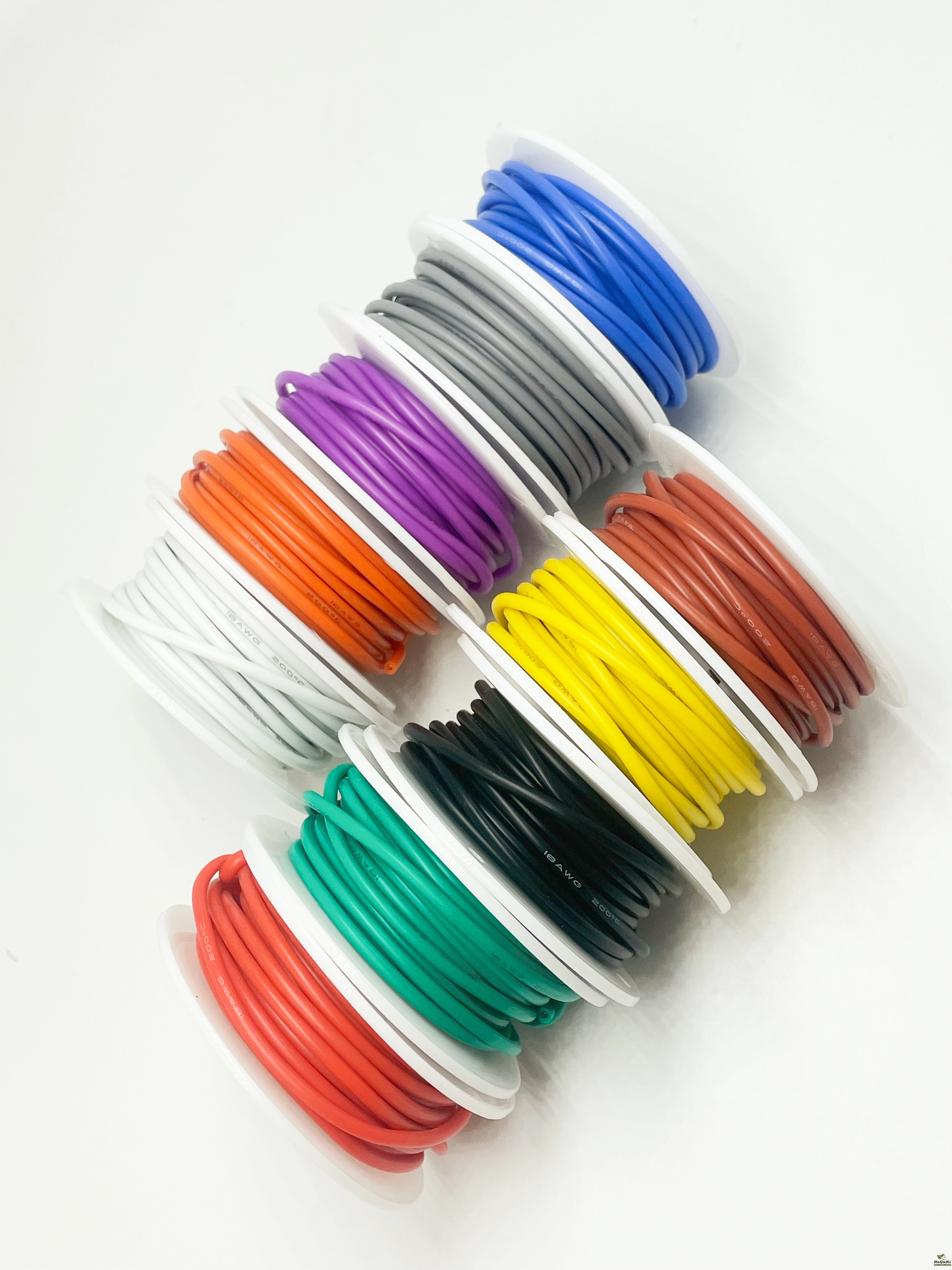 Featuring silicone insulation and a fine stranded core, this wire is very soft and easy to strip and solder. Ideal for applications where the wire will bend, such as test cables. Can be terminated with pins and heat shrink tubing for breadboard jumpers.