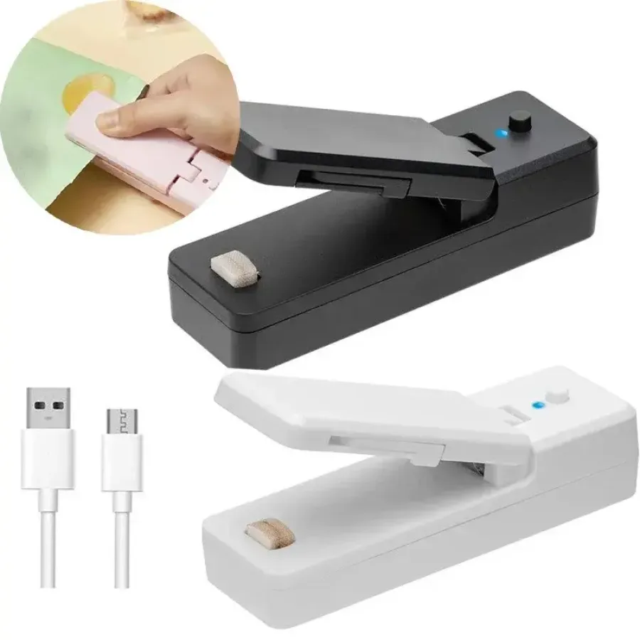 Heat Sealer USB Rechargtable Mini Sealing Machine Storage Bag Clip Mini Sealing Machine Sticker Seal for Food Snack Kitchen Gadg