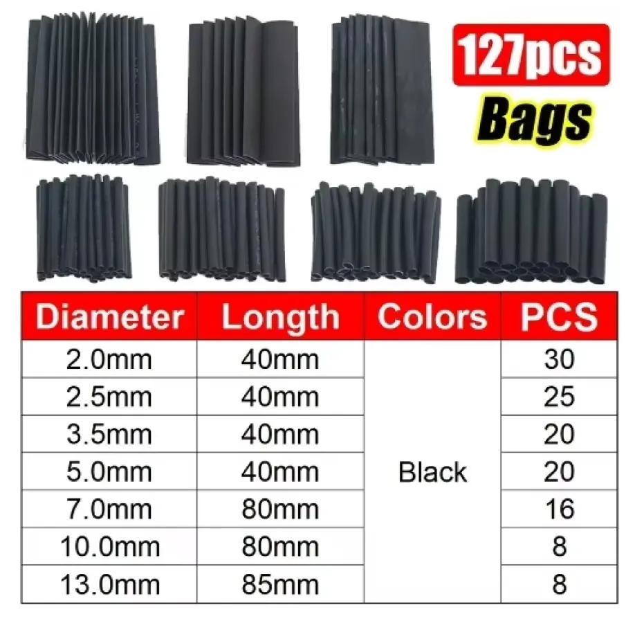 5Meters/LOT Black Heat Shrinkable Tube 1mm 1.5mm 2mm 3mm 4mm 5mm 6mm 7mm 8mm 10mm Black Insulation Sleeve 125C