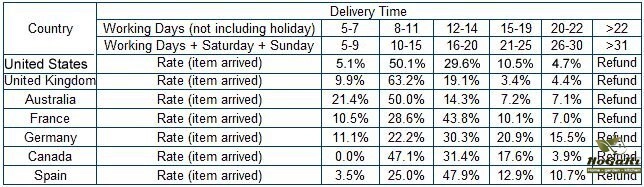 If you can't find the estimated delivery time on the product detail page, you can look at the following table for reference.