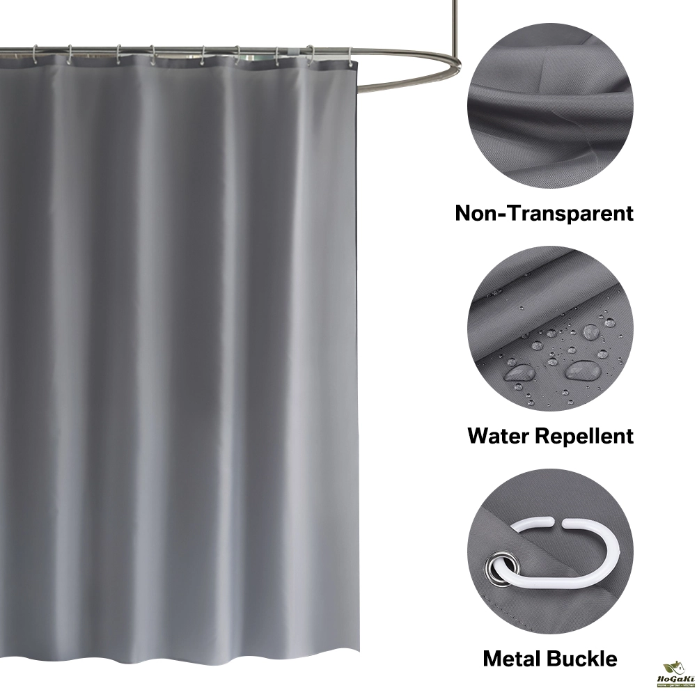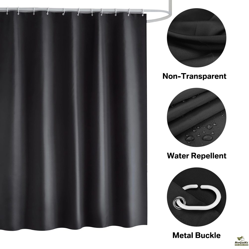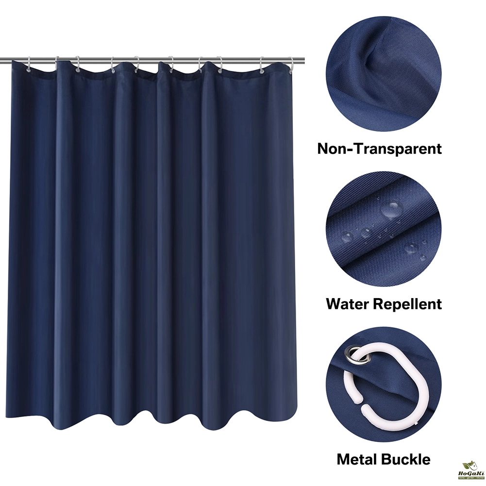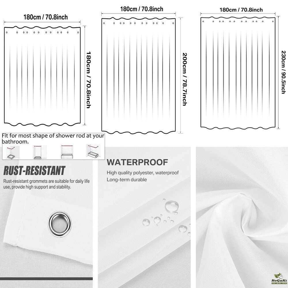 REINFORCED HOLES: Reinforced button holes work with most types of shower hooks and ring for quick and simple installation (with 12pcs hooks); Top hem is reinforced to hold up to long term use and will help this curtain keep its shape; This shower curtain will complement any bathroom, use at home, apartment, condo, hotel, camper, RV, dorm, school shower, athletic club, gym and everywhere else you need a reliable shower curtain or liner.