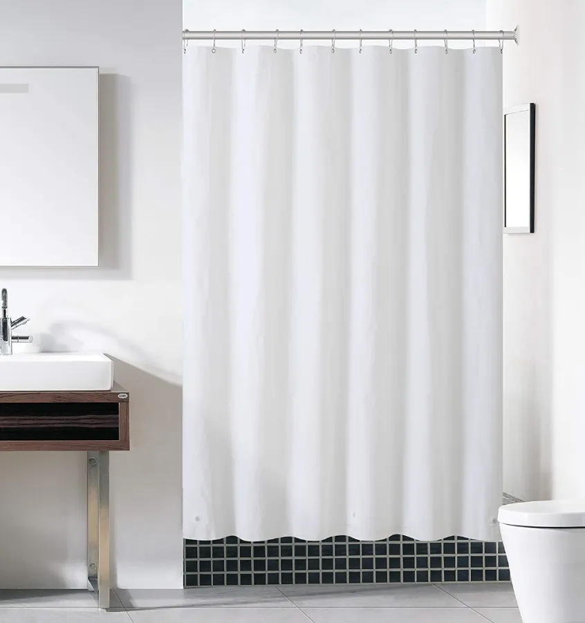 WATER REPELLENT: The tight weave and superior quality of the fabric provide it with a firm, smooth texture which promotes water bead formation and prevents curtain soaking and bathroom floor messes; Waterproof coating on the backside allows water beads to form across the curtain allowing for quick water removal and swift drying; No more slippery floors; The long length is perfect for higher ceilings and keeps water in the shower or tub and not on your floor.