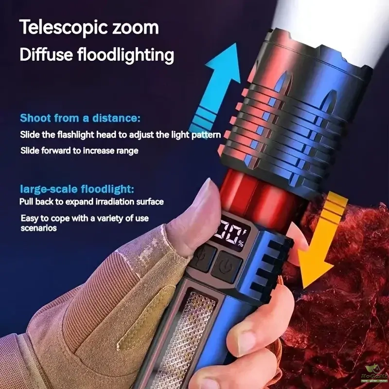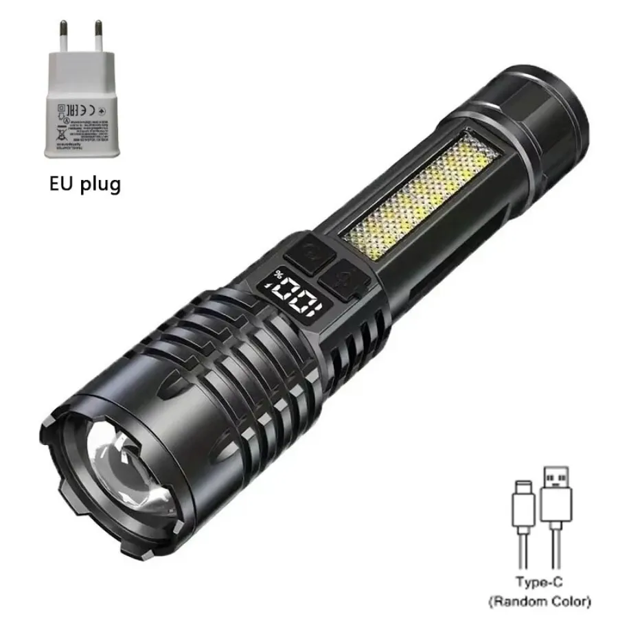 High Strong Power LED Flashlight Tactical Torch USB Rechargeable Zoom Emergency Lights For Outdoor Fishing Work Lighting Lamp