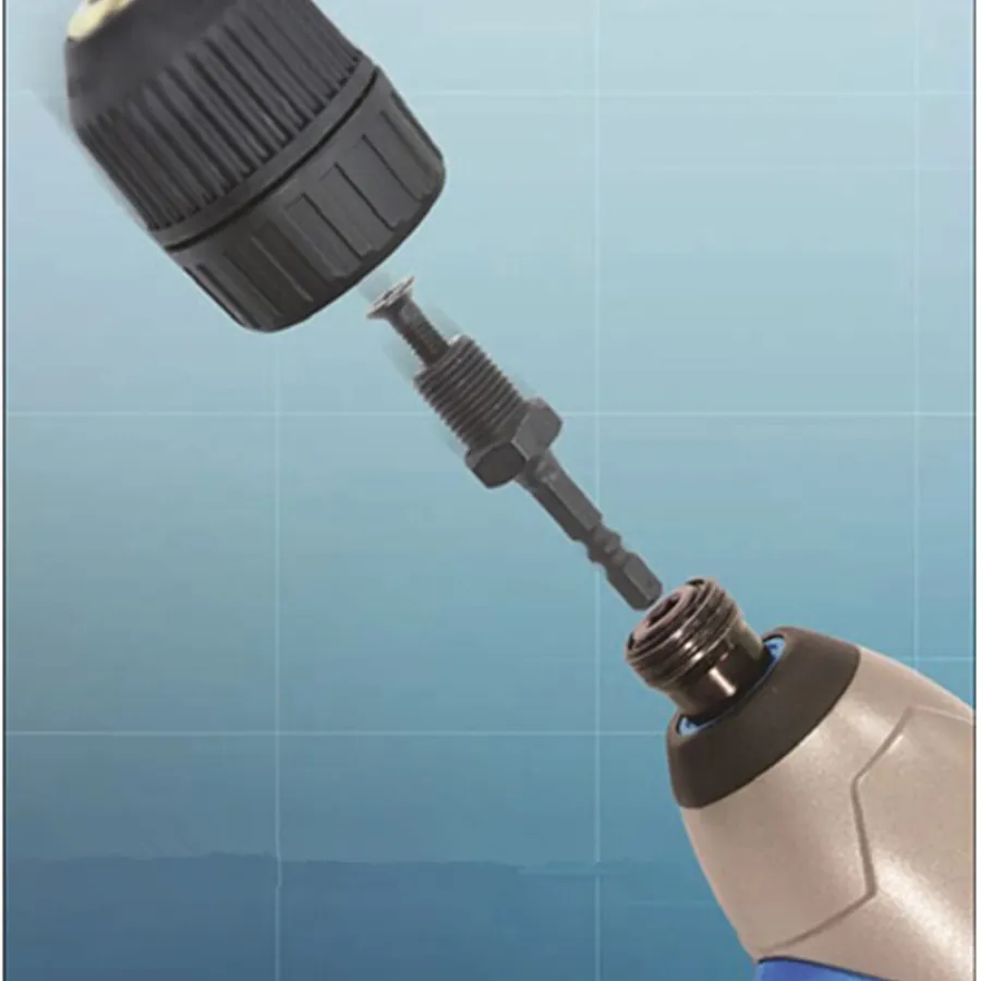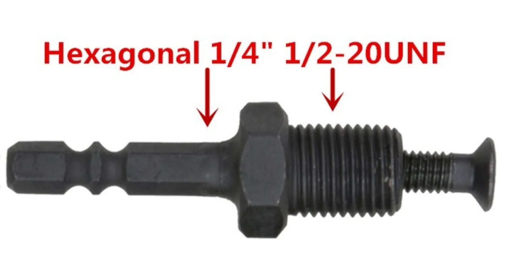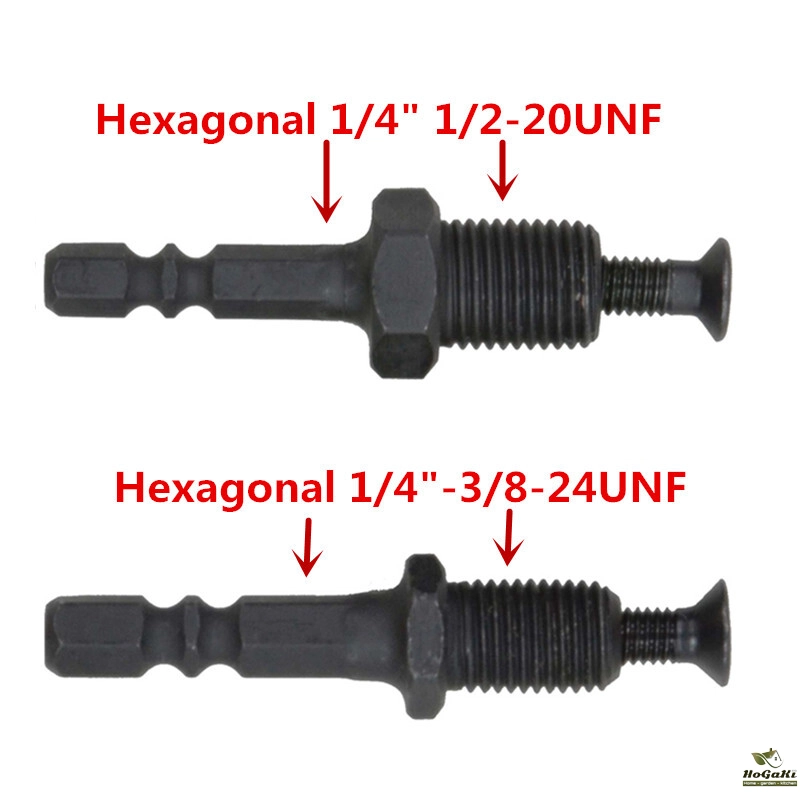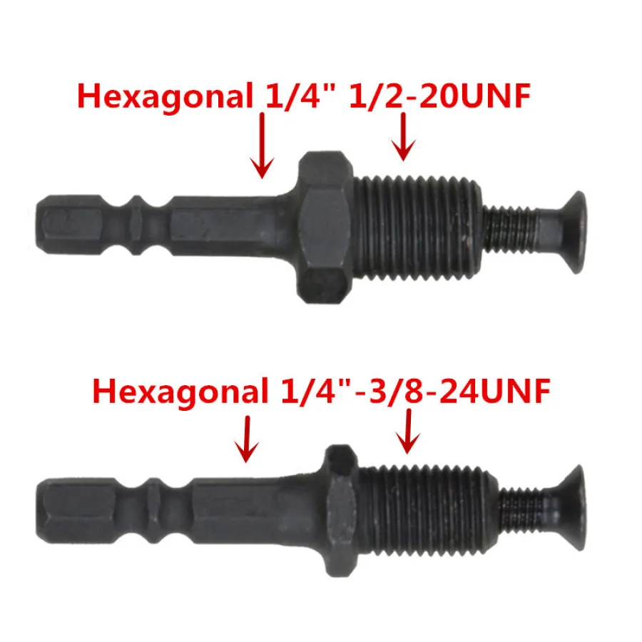 Hexagonal 1/4" 6.35mm Hex ShankAdapter to 1/2-20UNF Hex Shank Male Thread w Reverse Screw for Drill Chuck LXM
