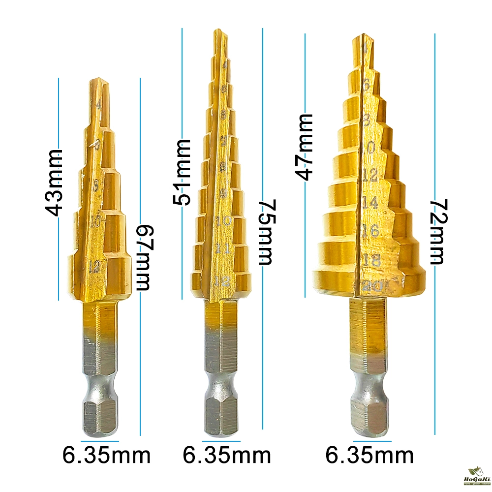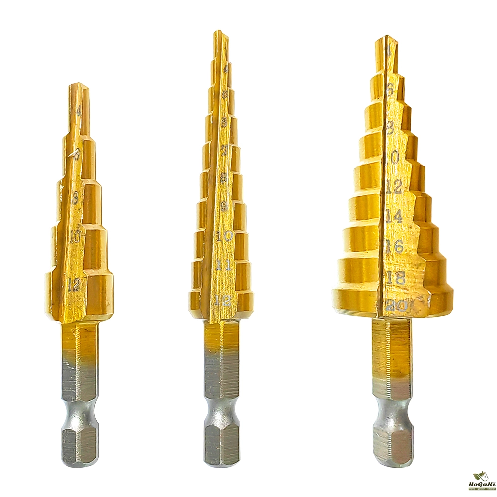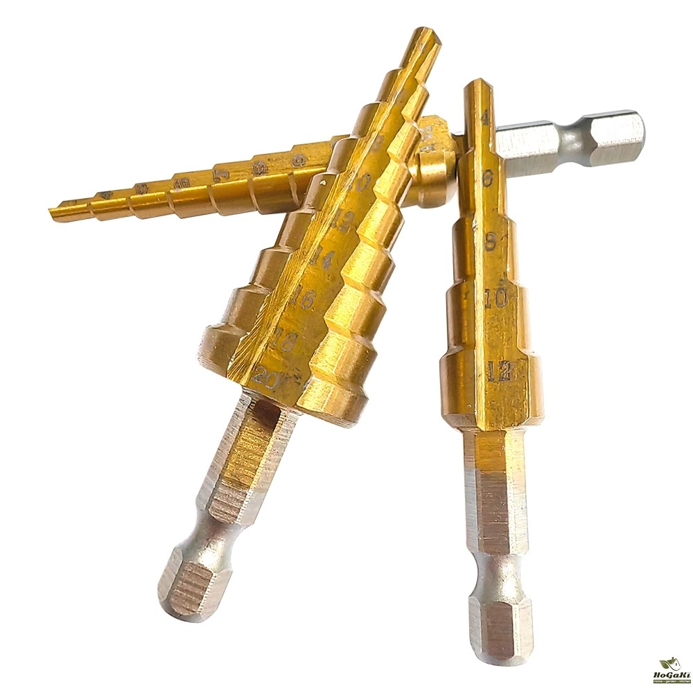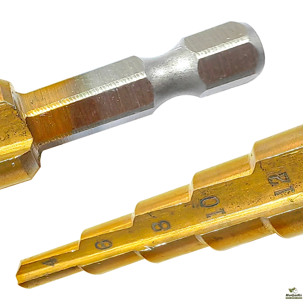 Titanium plated hexagonal straight groove ladder drill (3-12/4-12/4-20)* 2