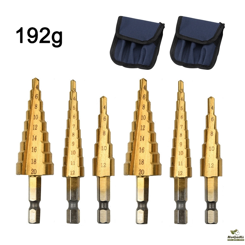 1. Unique stepped construction, with one drill bit capable of opening multiple sizes and apertures, and one stepped drill bit supporting a box of drill bits.