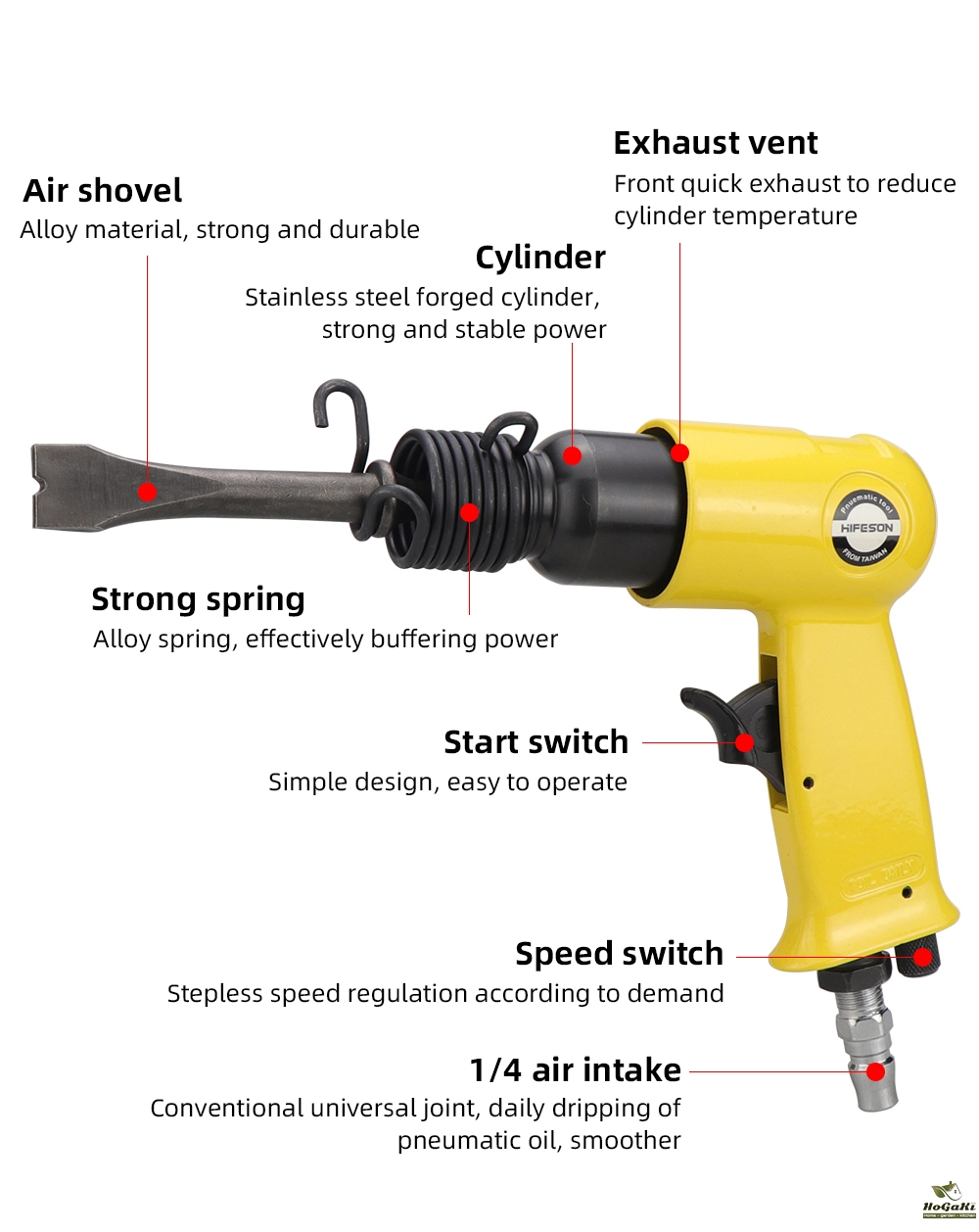 - Pistol Type design, hand held operation flexible and convenient.