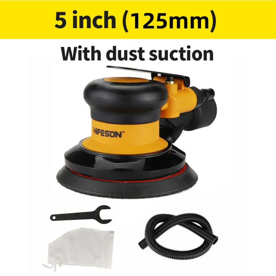 HIFESON 5inch/6inch Pneumatic Orbital Sander Air Polisher 125mm/150mm Air Vacuuming Eccentric 5mm Grinding Machine EU Connector