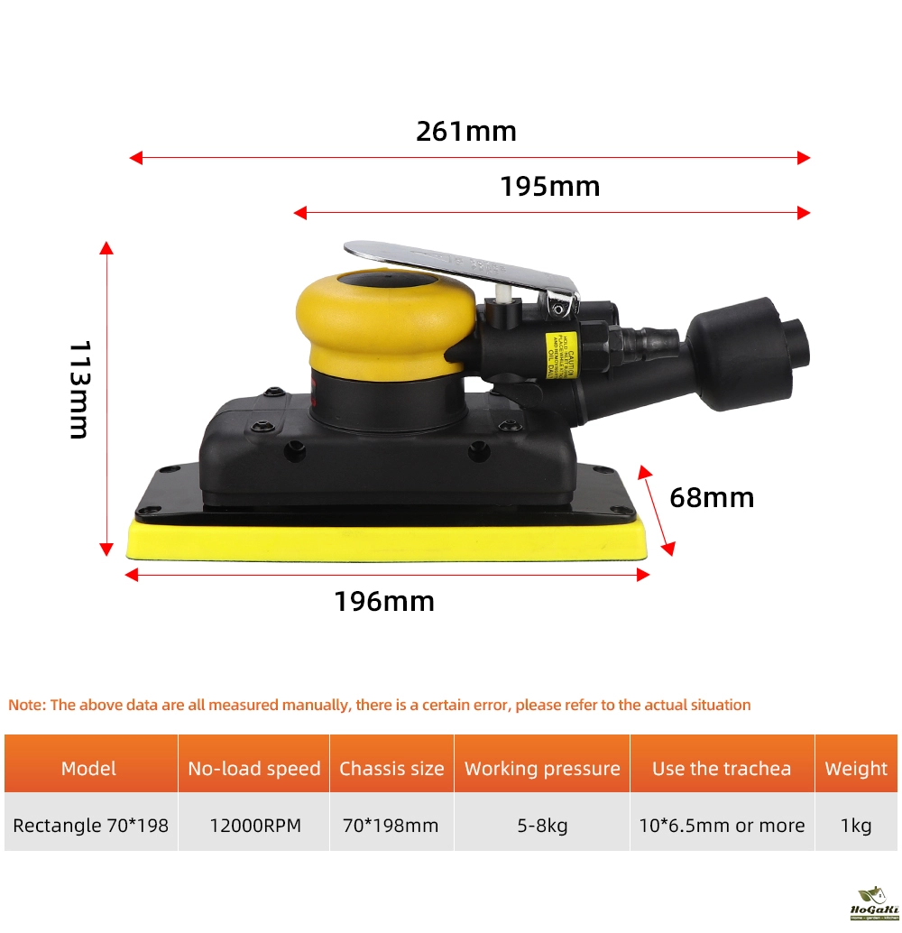 HIFESON 70x198mm Pneumatic Orbital Sander 98A Air Sander Polishing Vacuum Rectangular Sanding Machine For Metal Car Polishing