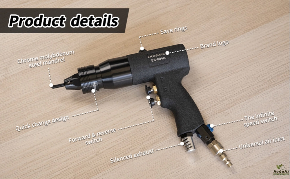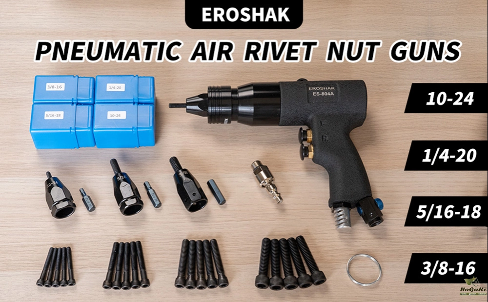 HIFESON Pneumatic Air Rivet Gun Blind Riveting Gun Flat Nuts Riveter Rivnut Tool Kit For M3 M4 M5 M6 M8 M10 M12 Pull Nuts
