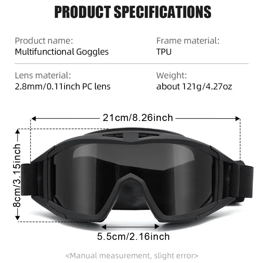 High Impact Resistant Goggles Durable Tactical Protective Goggles with 2.5 mm Thick Protective Lens