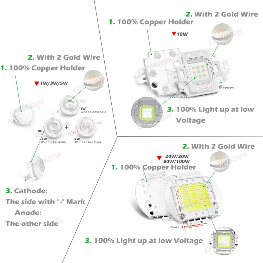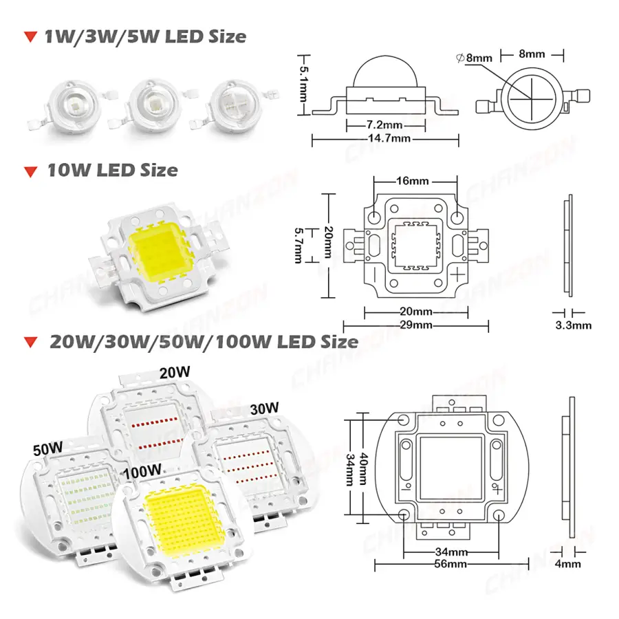 High Power Led Light Chip Bead 1W 3W 5W 10W 20W 30W 50W 100W Warm Natural Cold White Diy 1 3 Watt Smd Cob Bright Floodlight Bulb