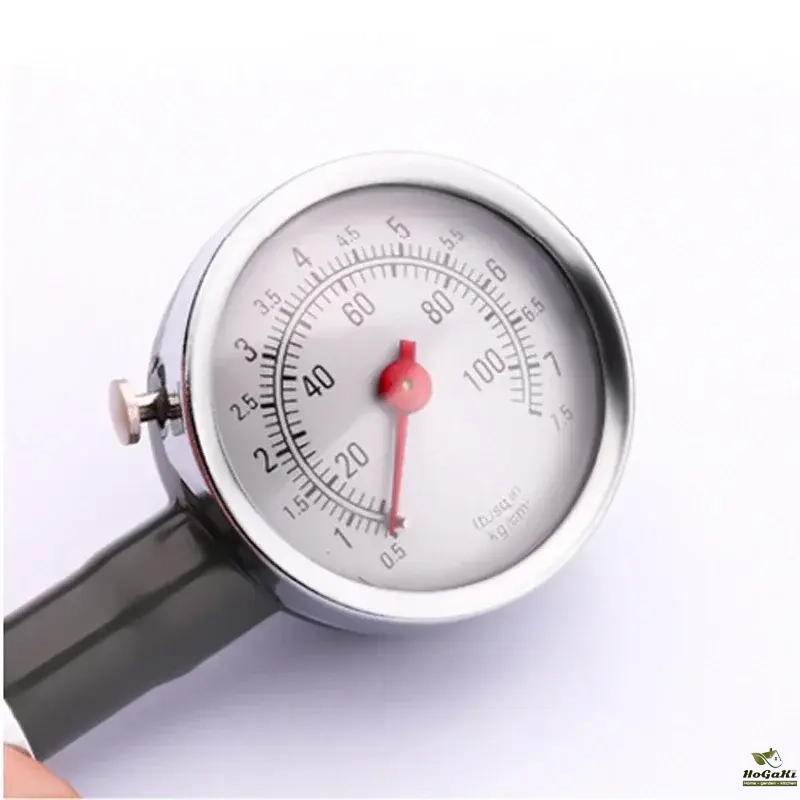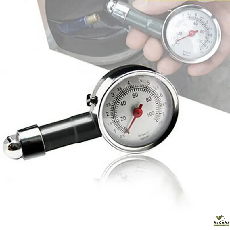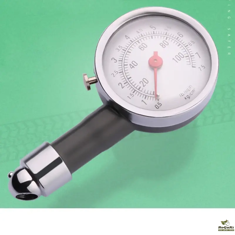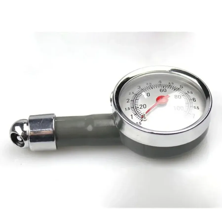This item is a mechanical tire pressure gauge for car, truck, motorcycle and bicycle. Check tire pressure with it regularly to guard a safe driving. It gives you an instant, accurate, and easy-to-read measurement in the pointer with LBS/SQ.IN and kg/cm2 readings. Its pressure range is 0-7kg, 0-100lb/in. A helpful tool for your car, bike or truck to maintain correct tire pressure, reduce tire wear and extend tire life.