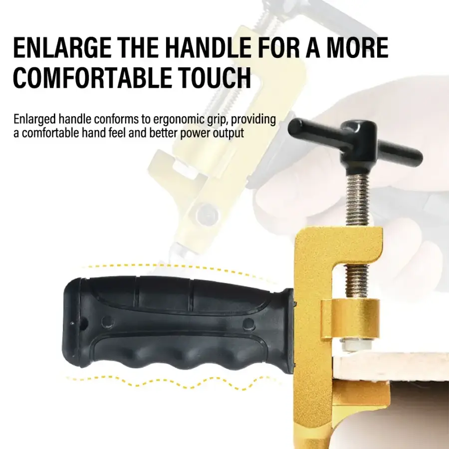 【Operation Method】1. Marking a scratch line on the tile. 2. Aligned the guideline on the tile breaking plier body and the marked scratch line. 3. Rotate the handle until the tile is divided.