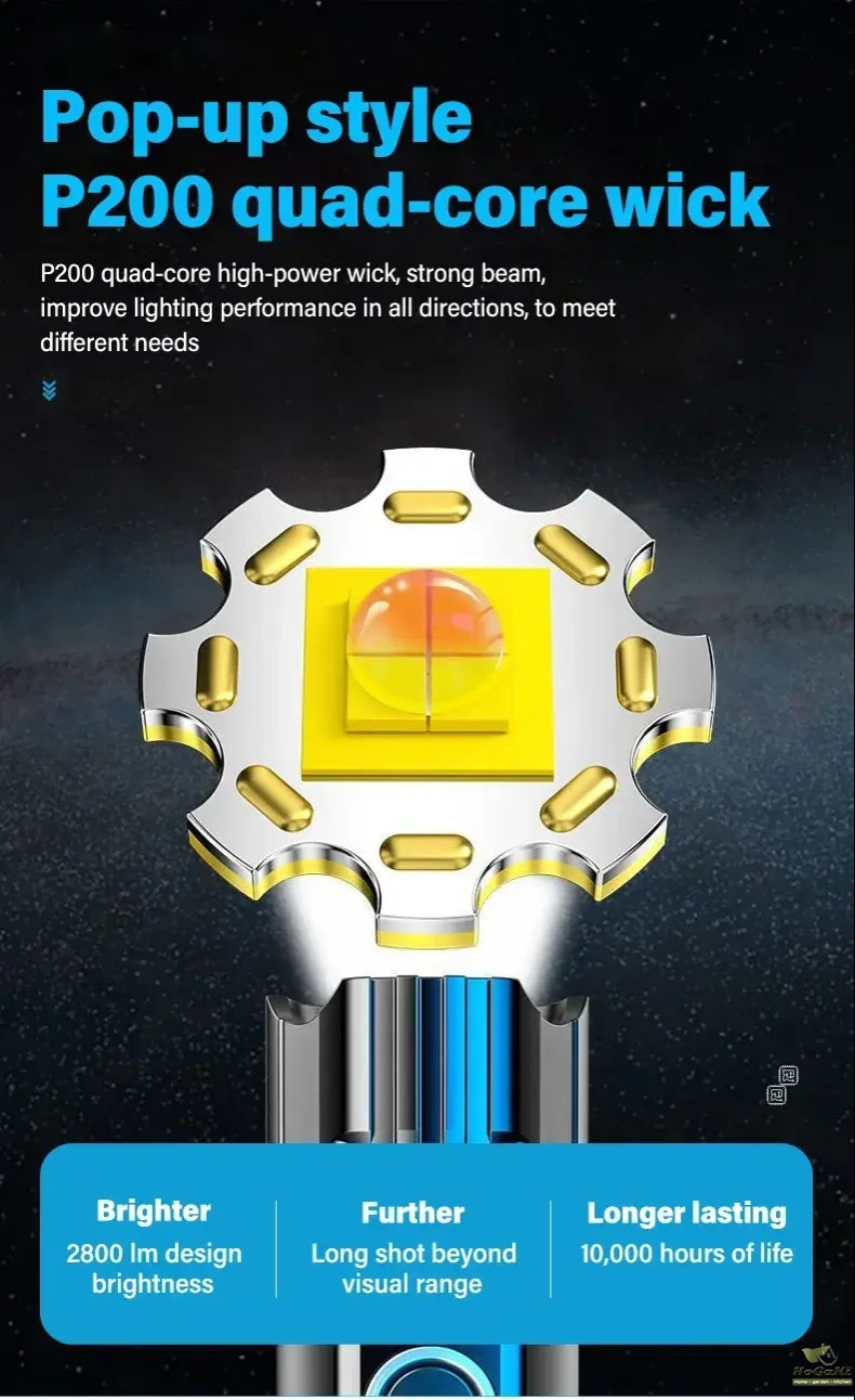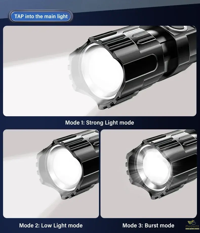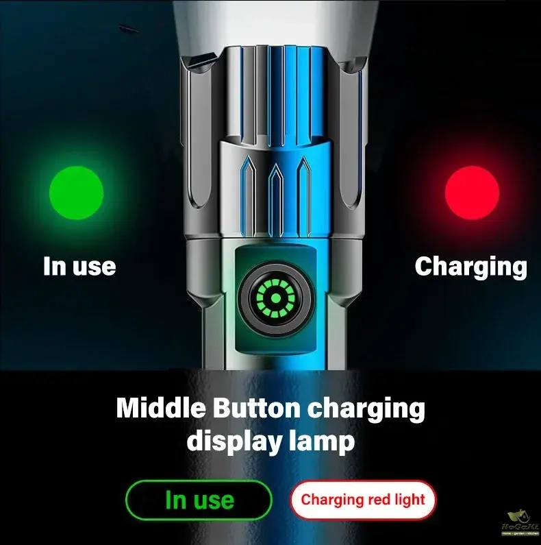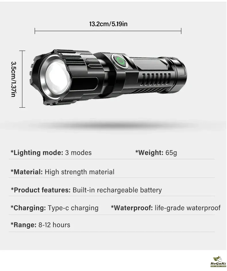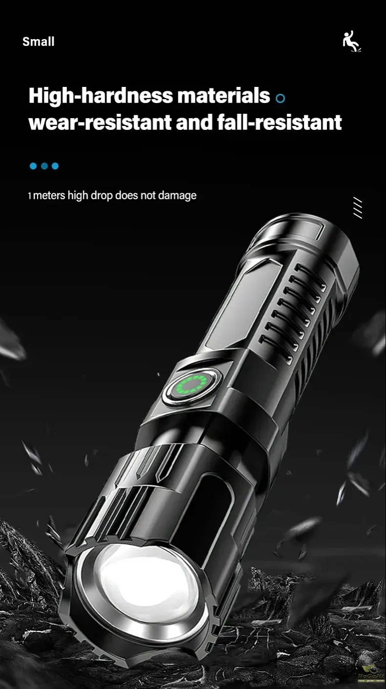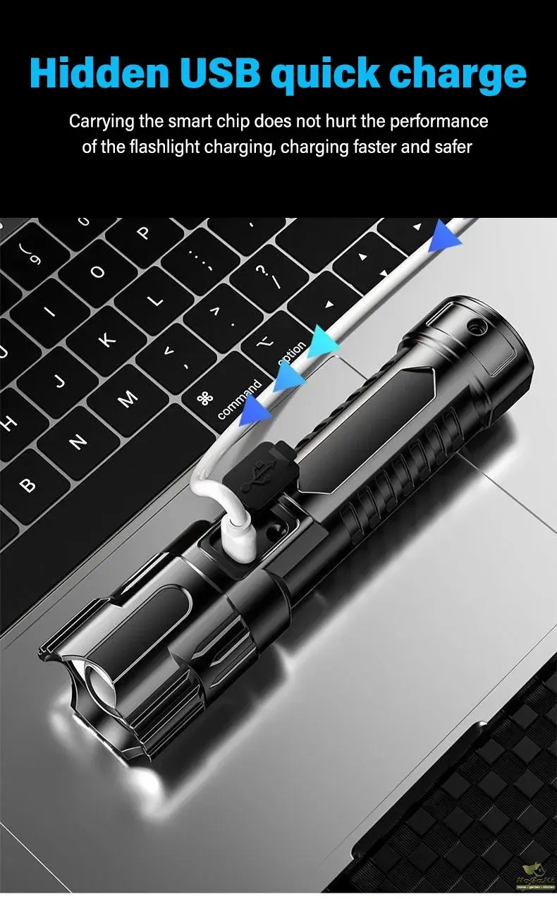 Telescopic Zoom Tactical Flashlights Rechargeable LED Torch 4 Lighting Modes Long-Range Waterproof Camping Fishing Flashlight