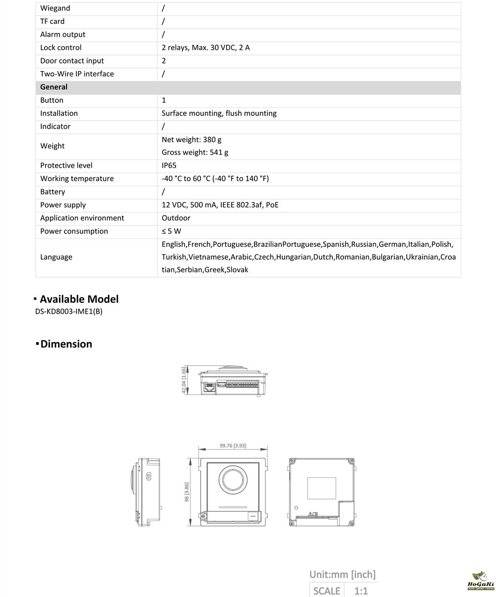 Hikvision DS-KD8003-IME1(B) Modular Video Intercom module door station can realize functions such as