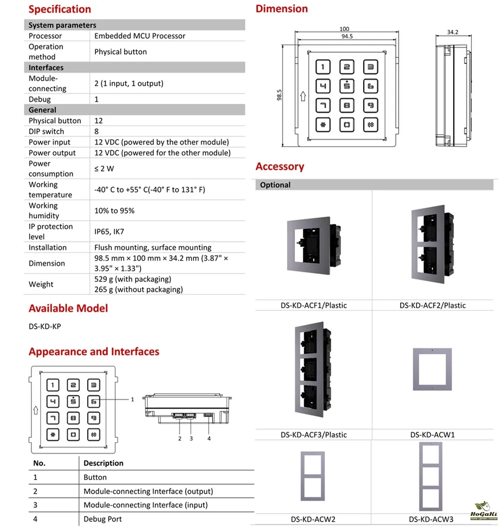 Hikvision DS-KD8003-IME1 Modular Video Intercom module door station can realize functions such as