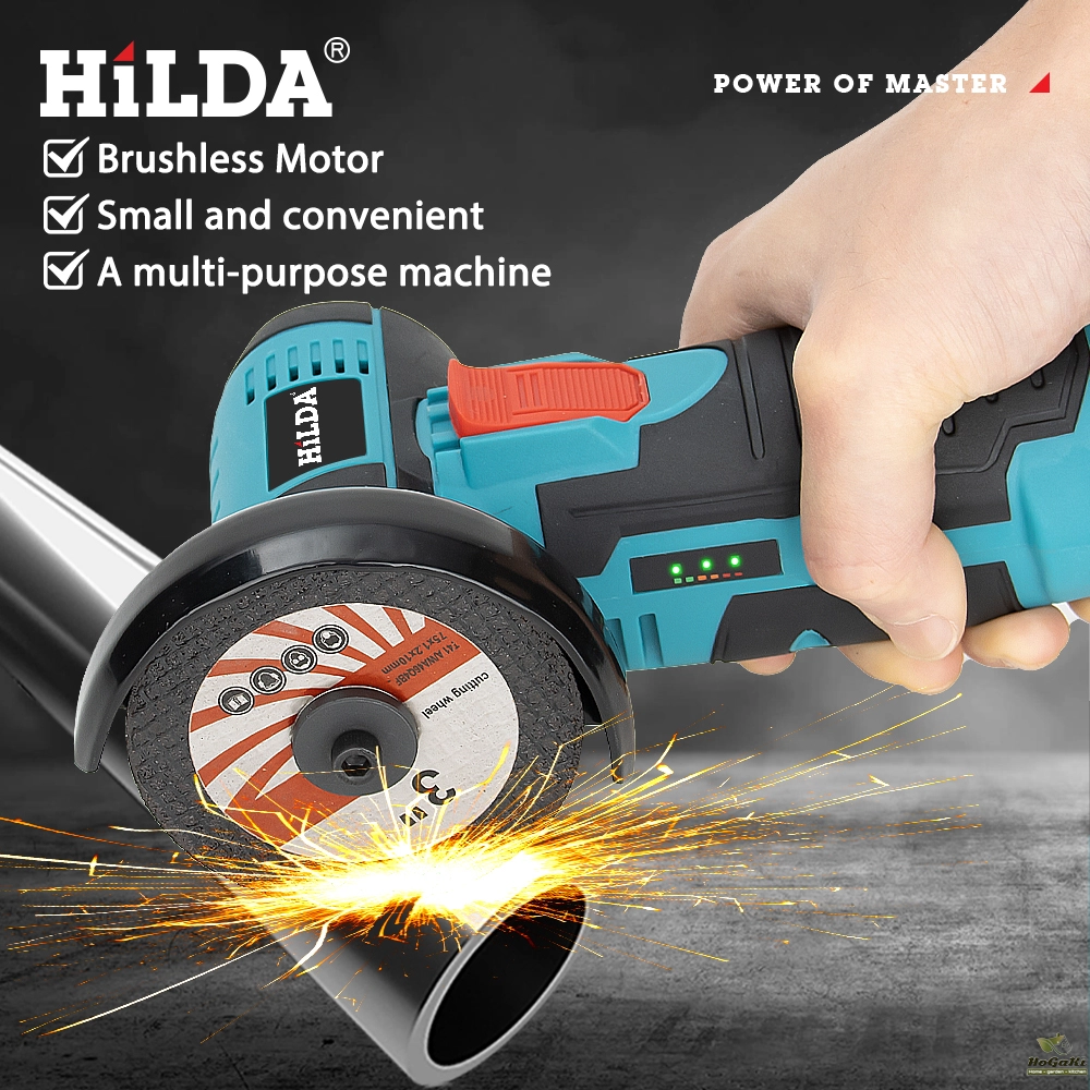 HILDA 21V Brushless Angle Grinder Brushless Polishing Machine Handheld Rechargeable Electric Power Tools for Makita Battery