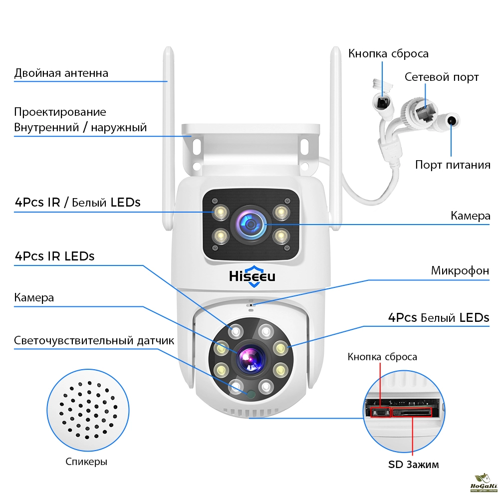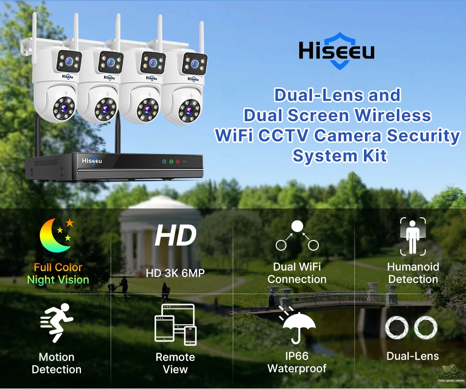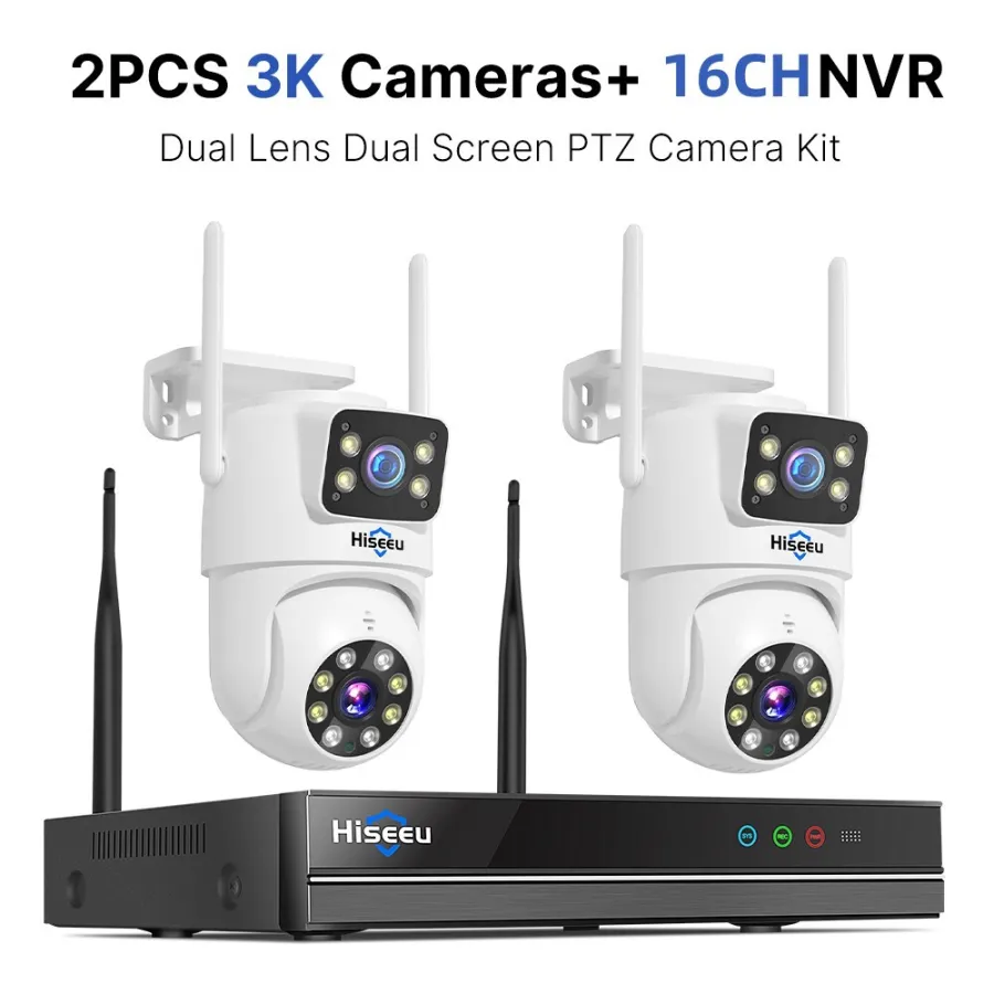 Dual lens, Dual screen, Notifications alarm, humanoid tracking, two way voice intercom 360 monitoring, full color night vision, IP66 waterproof, mobile phone remote monitoring,Share video, SD card storage, 24 hours video recording