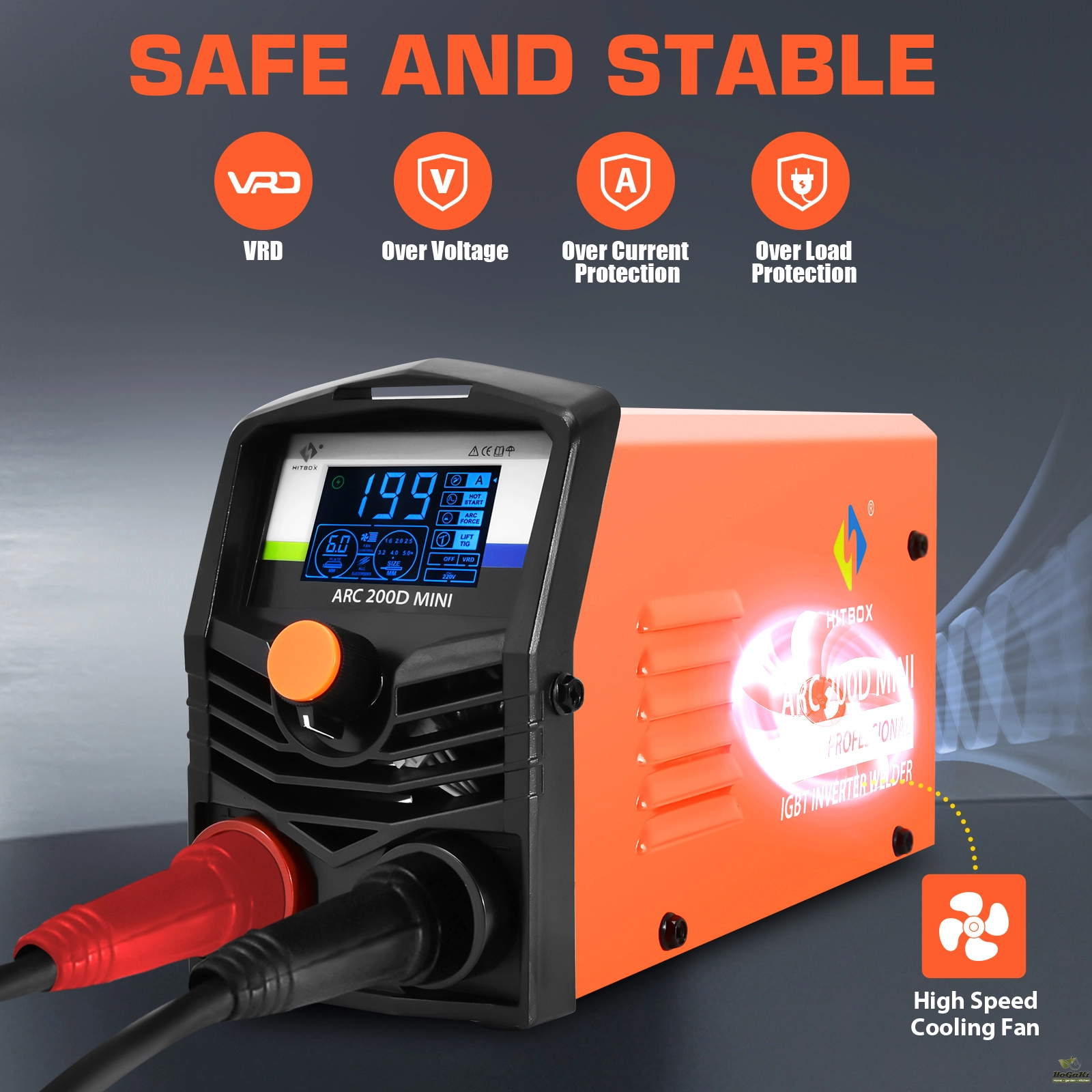 【Intelligent LED for Easy Operation】- The HITBOX MINI ARC200D is very easy to use and can be used for practice and small welding tasks. Equipped with intelligent digital display, alarm LED and welding current reading. Easy to use, safe and convenient, especially suitable for beginners.