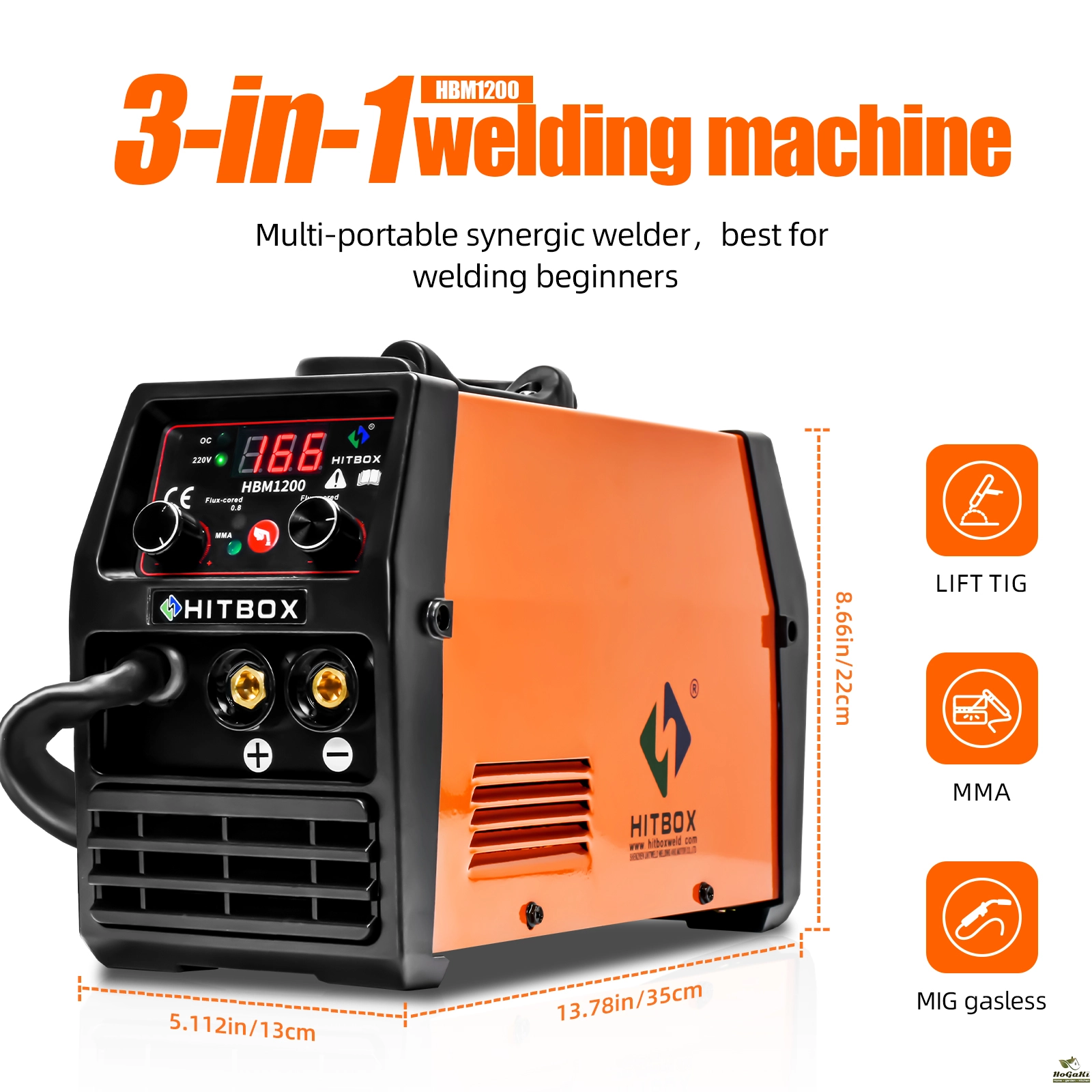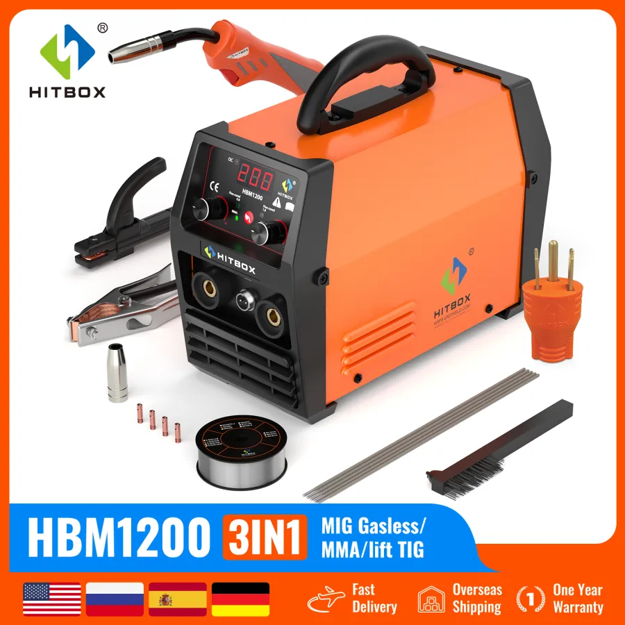 【3 in 1 Gasless Wire Welder】: HITBOX MIG welder has 3 functions of MIG/ARC/TIG, HBM1200 uses convenient flux cored wire, and works without gas. The working efficiency is 40% higher than traditional ARC welders, one-time molding, no need to tap and grind, making the welding appearance more beautiful.TIP: Each one was tested and it is normal for the contact tip with black burn marks.