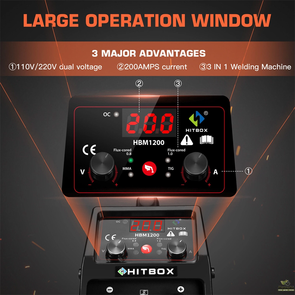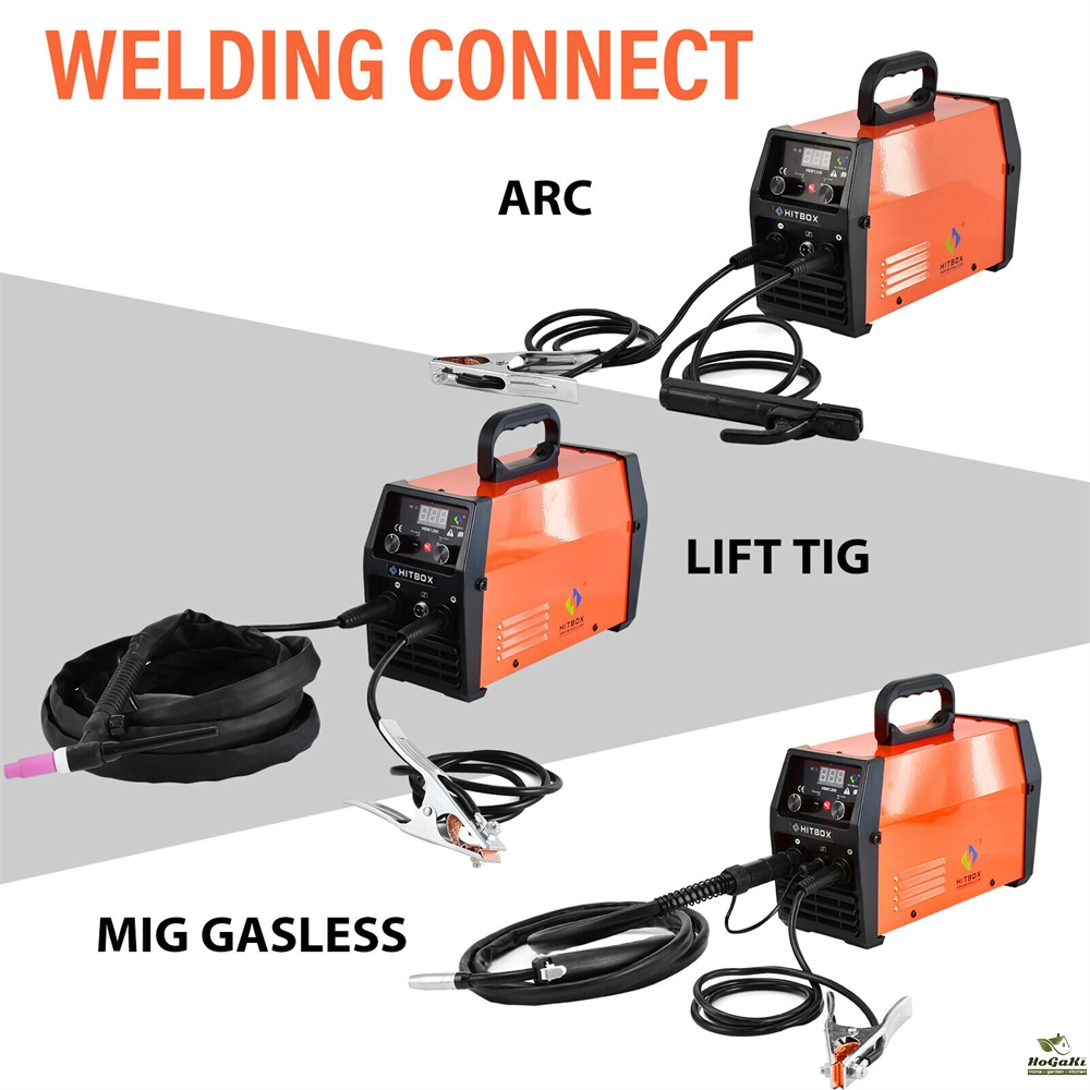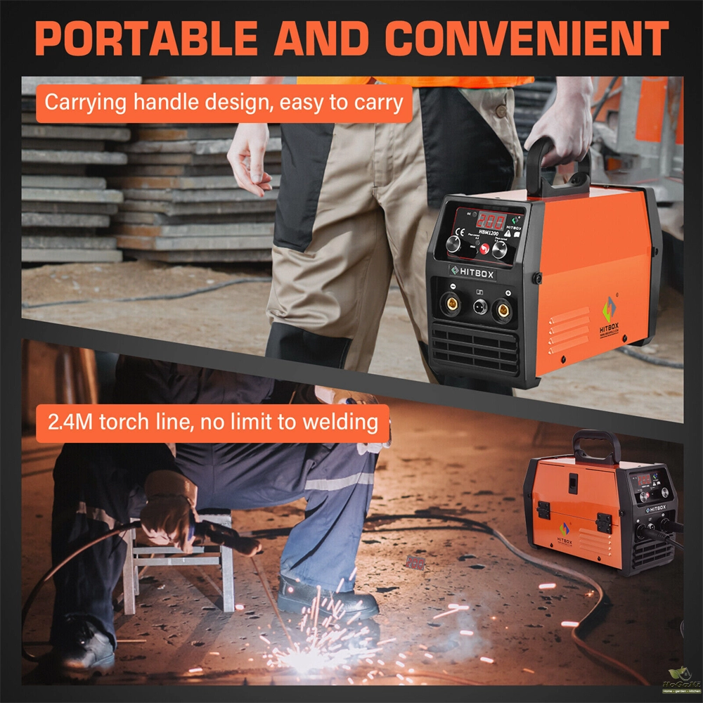 220V HITBOX Welding Machine HBM1200 With TIG MIG Torch Fit 0.8/1.0mm Welder Wire Gasless Arc Soldering