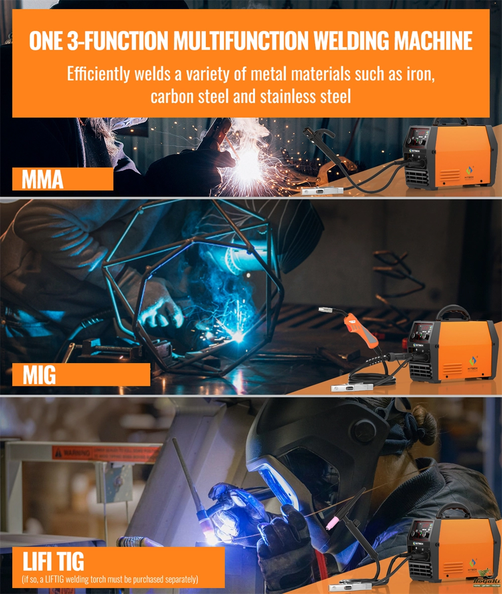 HZXVOGEN 3 in 1 Semi-Automatic Welding Machine MMA/Gasless MIG/Lift TIG Inverter Welder Synergy Tool For No Gas Iron Soldering