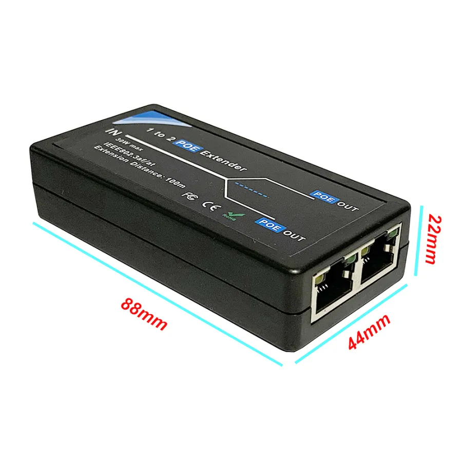2 Port PoE extender can forward both Ethernet and PoE power for 1 terminal equipment via Cat5 ,Cat5e,Cat6,Cat6e,UTP cable.