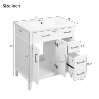 SH.KL 30" Bathroom Vanity with Ceramic Sink, Modern Storage Cabinet with Soft-Close Doors, Bathroom Furniture, Vanities