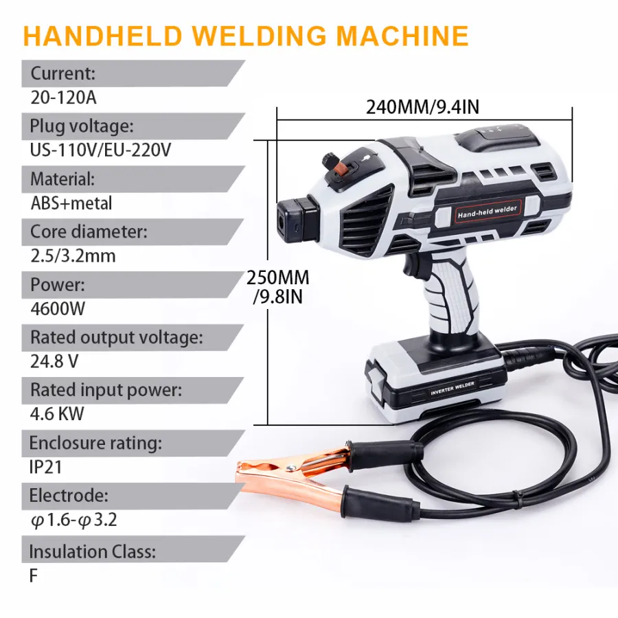 This handheld welding machine is highly efficient, power-saving, stable, compact and easy to carry, and supports a variety of electrodes and welding materials, making it an ideal choice for professional welders and DIY enthusiasts. Whether it's home repair, site construction or industrial manufacturing, it's easy to meet your diverse welding needs.
