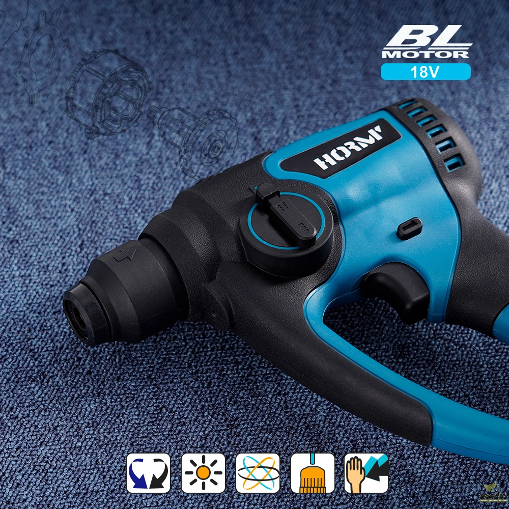 The DC1820 rotary rotary hammer is an ideal choice for professional construction professionals with its powerful brushless pure copper core motor, efficient work performance, rich panel functions and flexible accessory compatibility. Whether it's home renovation, building construction or industrial maintenance, it can handle all kinds of drilling and hammering jobs efficiently.