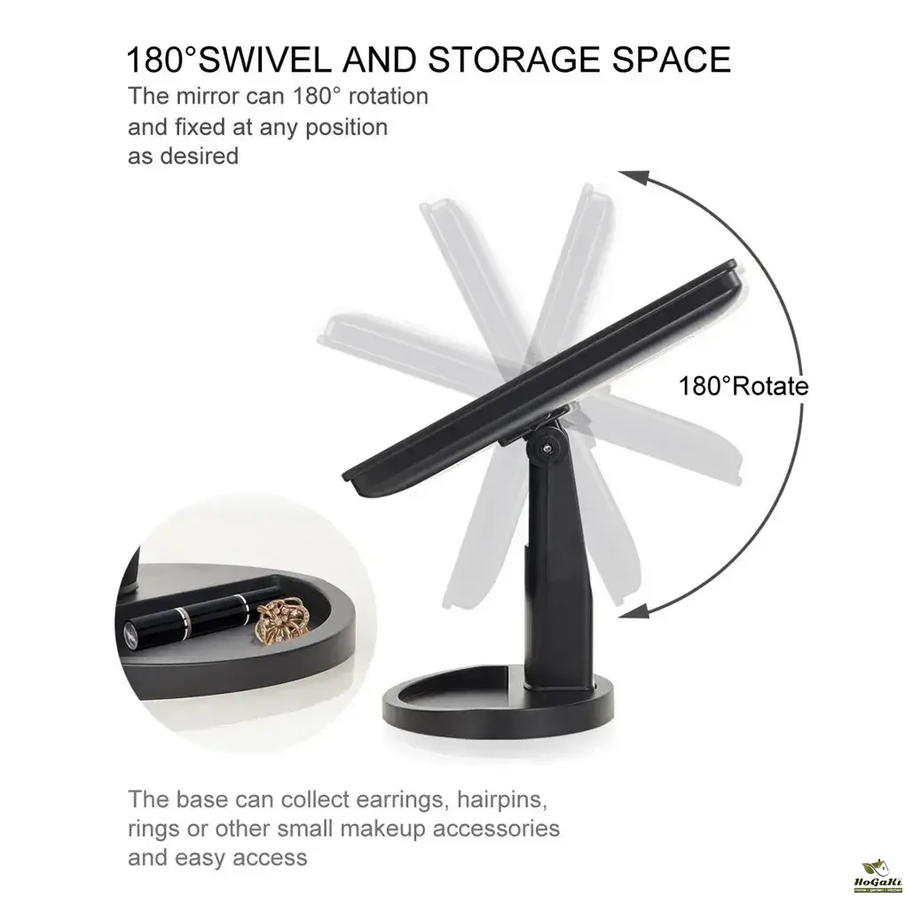 The LED rotating makeup mirror is convenient to operate is designed with a touch screen switch.