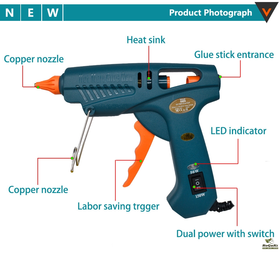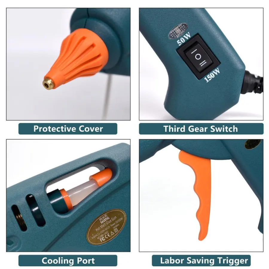 [50W/OFF/150W dual power supply]Dual power switch, can switch 50W / 150W freely according to your process needs. Glue gun can be widely used in homes, offices and factories. It is an ideal choice for DIY enthusiasts and industrial workers. Your DIY talent on handicrafts and fix anything you want.
