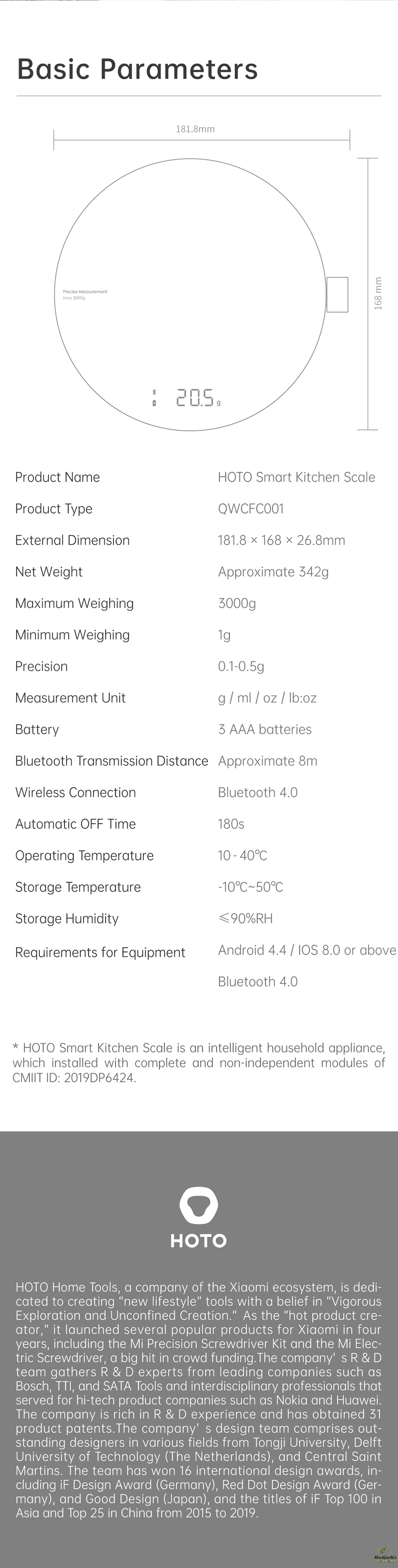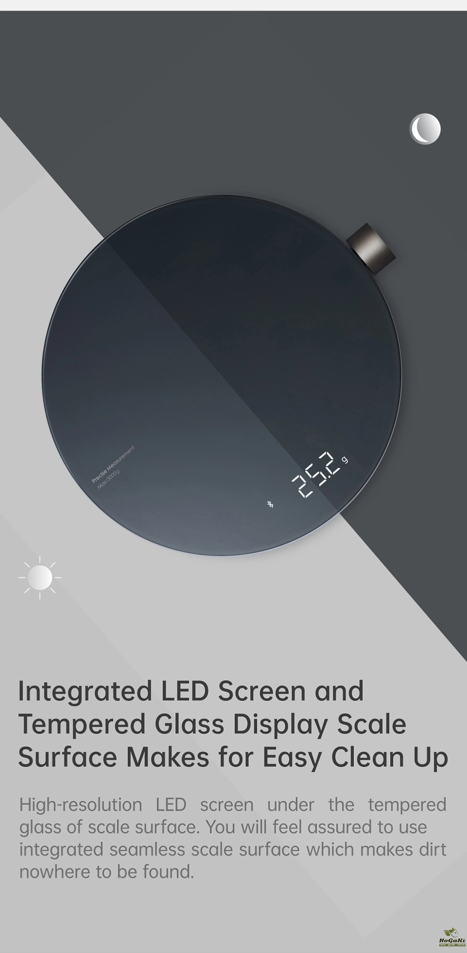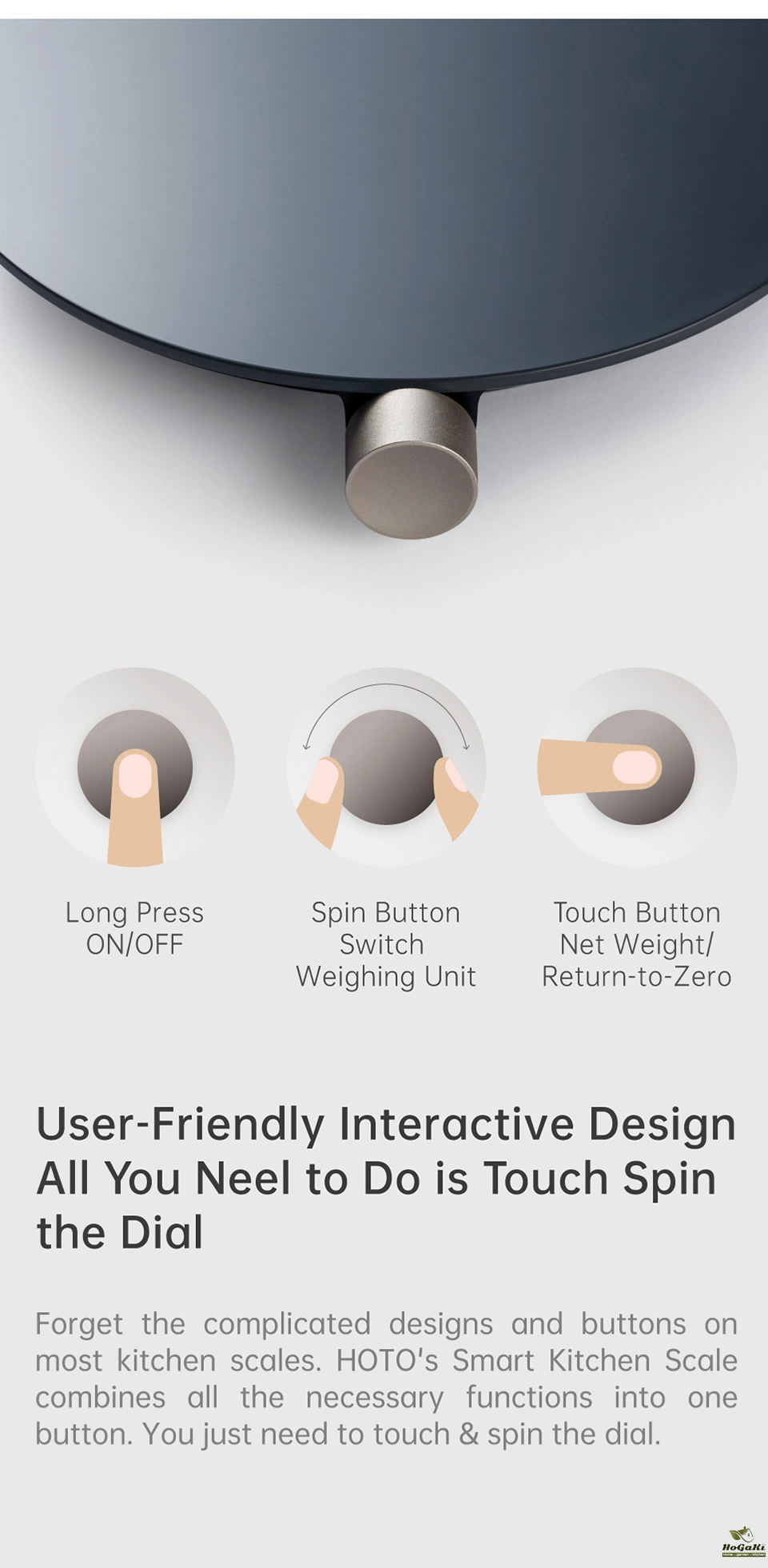 HOTO Smart Kitchen Scale has developed a new interactive design that combines different functions into one button.