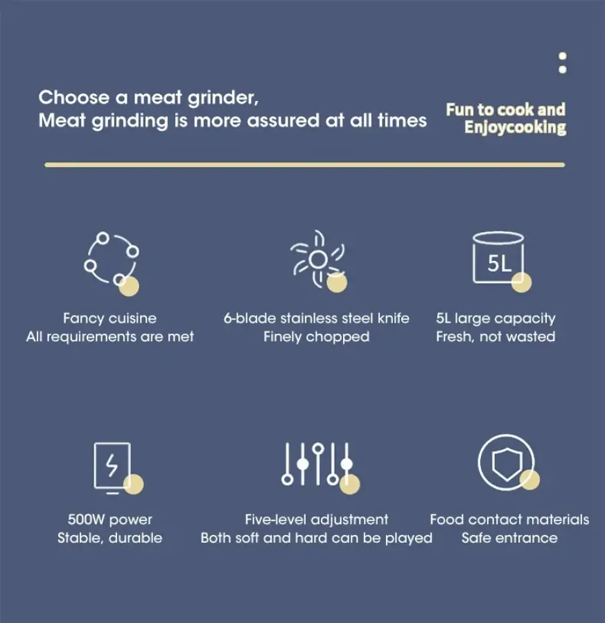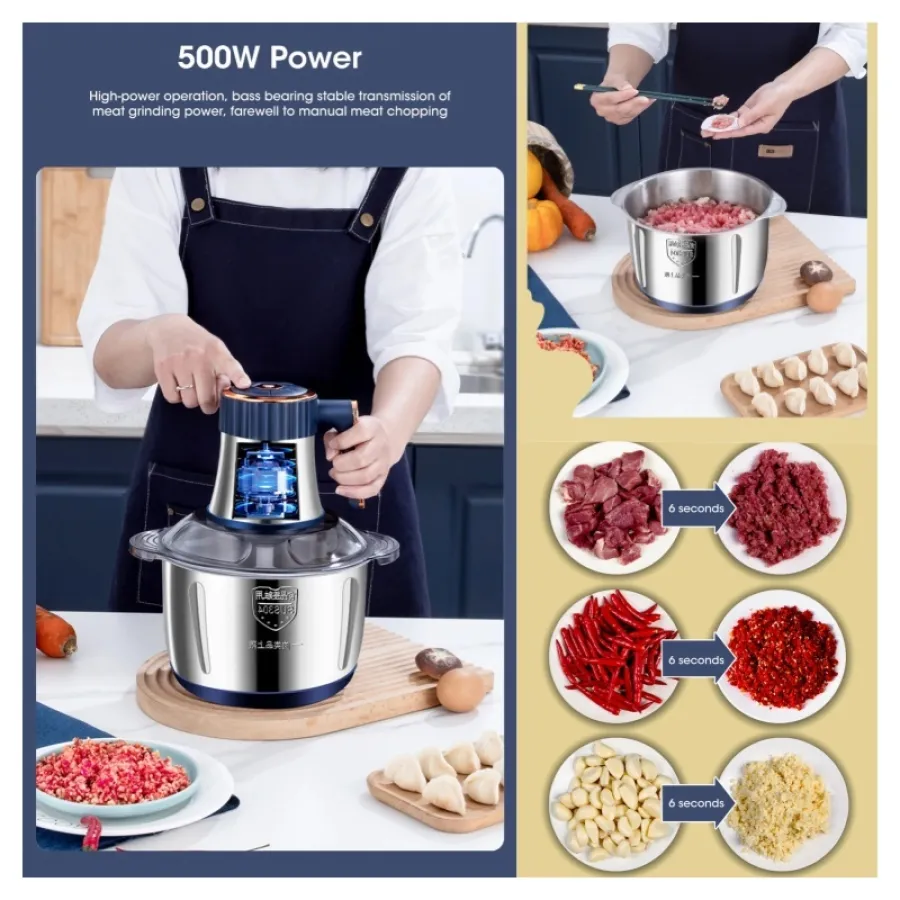 Household Meat Grinder Five-speed Stainless Steel Ground Meat Fruit and Vegetables Electric Kitchen Blenders Food Processor