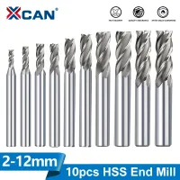 XCAN HSS Milling Cutter 4 Flute End Mill 10pcs 2-12mm for CNC Machine Milling Tools Router Bit Metal Cutter Aluminum Milling Bit
