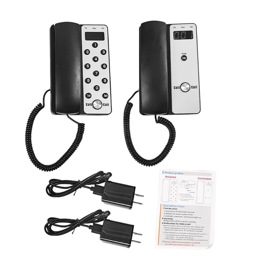 【Wireless Intercom System】: This wireless intercom phone operates at 433MHz and offers stable digital transmission over long distances. It doesn't require any wiring, network, or additional fees, making it a plug-and-play device with built-in signal.