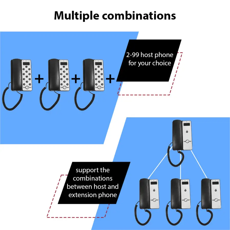 【Adjustable Call Features】: The device offers incoming call display, adjustable call volume, and one-touch calling. It also features a one-touch broadcast function and 38 different ringtones with adjustable volume.