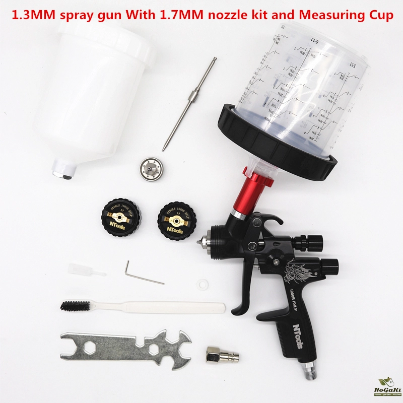 Hvlp Spray Gun with Adapter and Mix Tank Car Repair Paint Spray Guns 1.3 And 1.7mm Nozzle for Painting Water Based Air Spray Gun