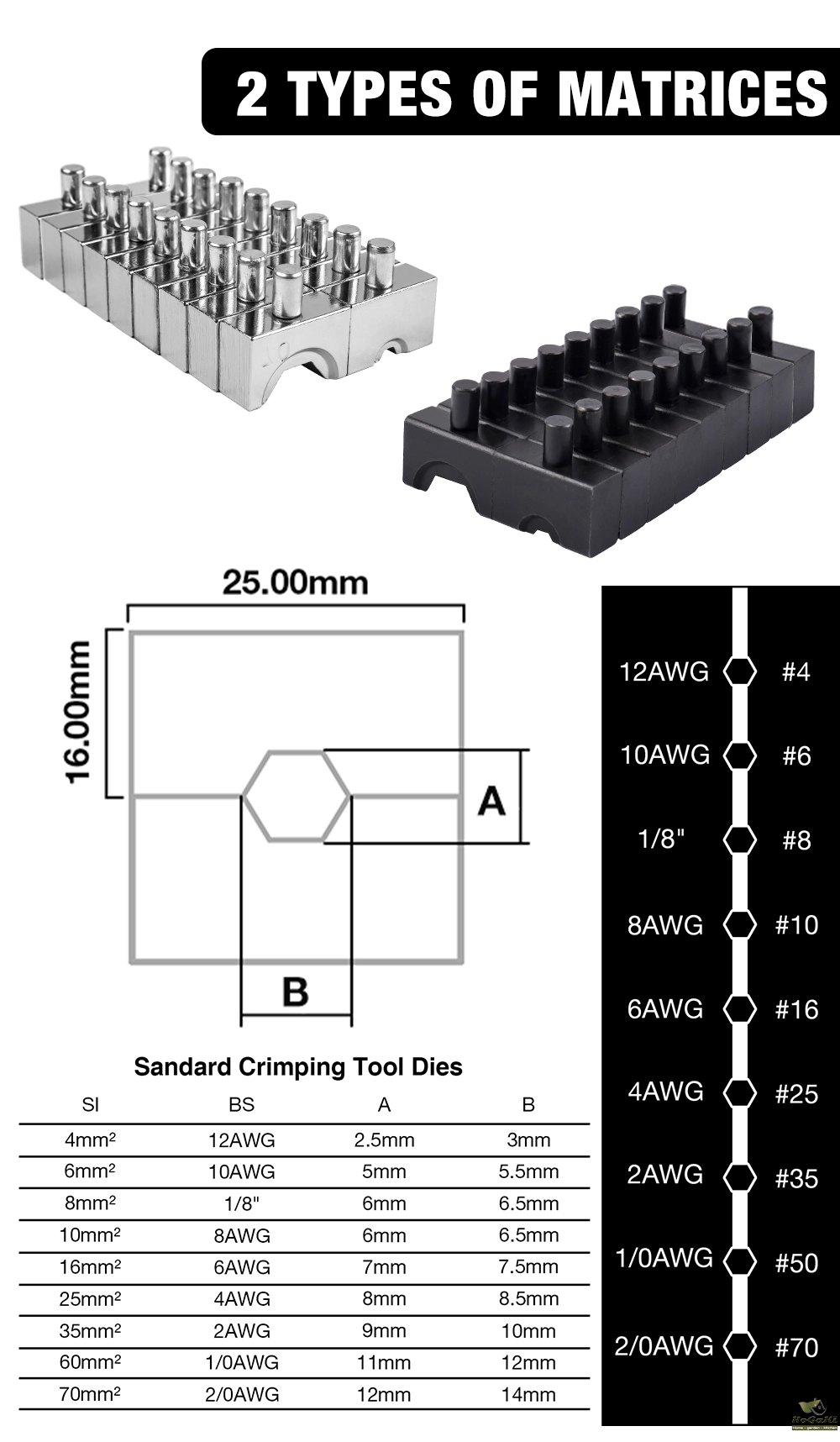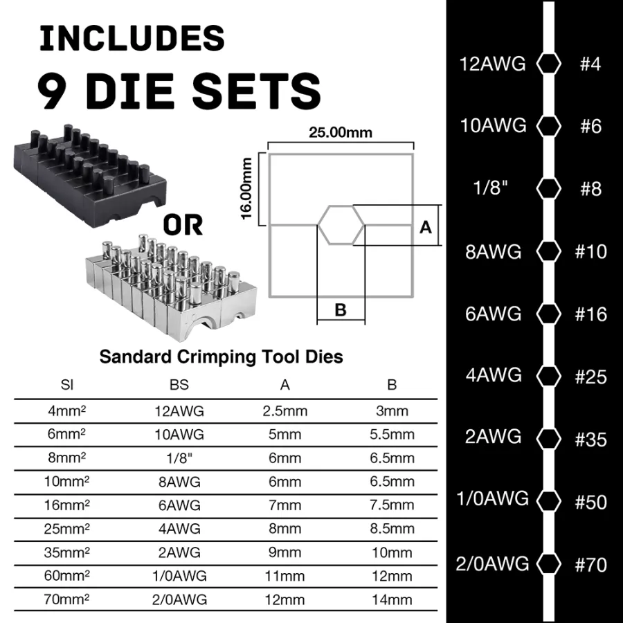 1. Terminal crimping tools are suitable for DIN, AWG, JIS specifications.