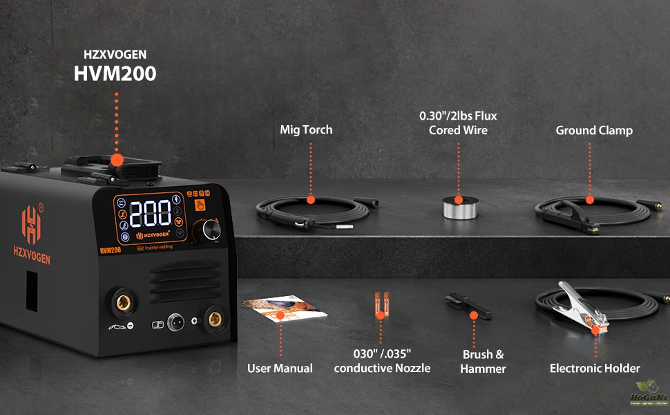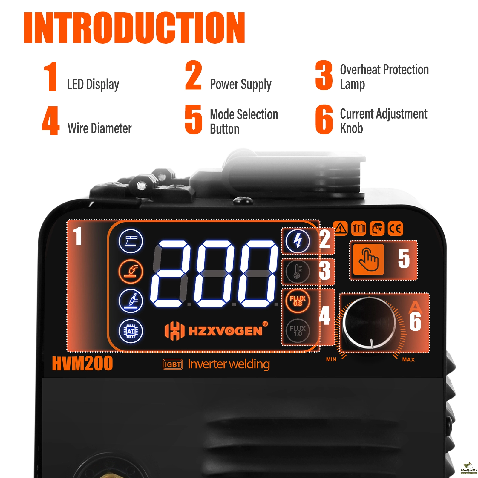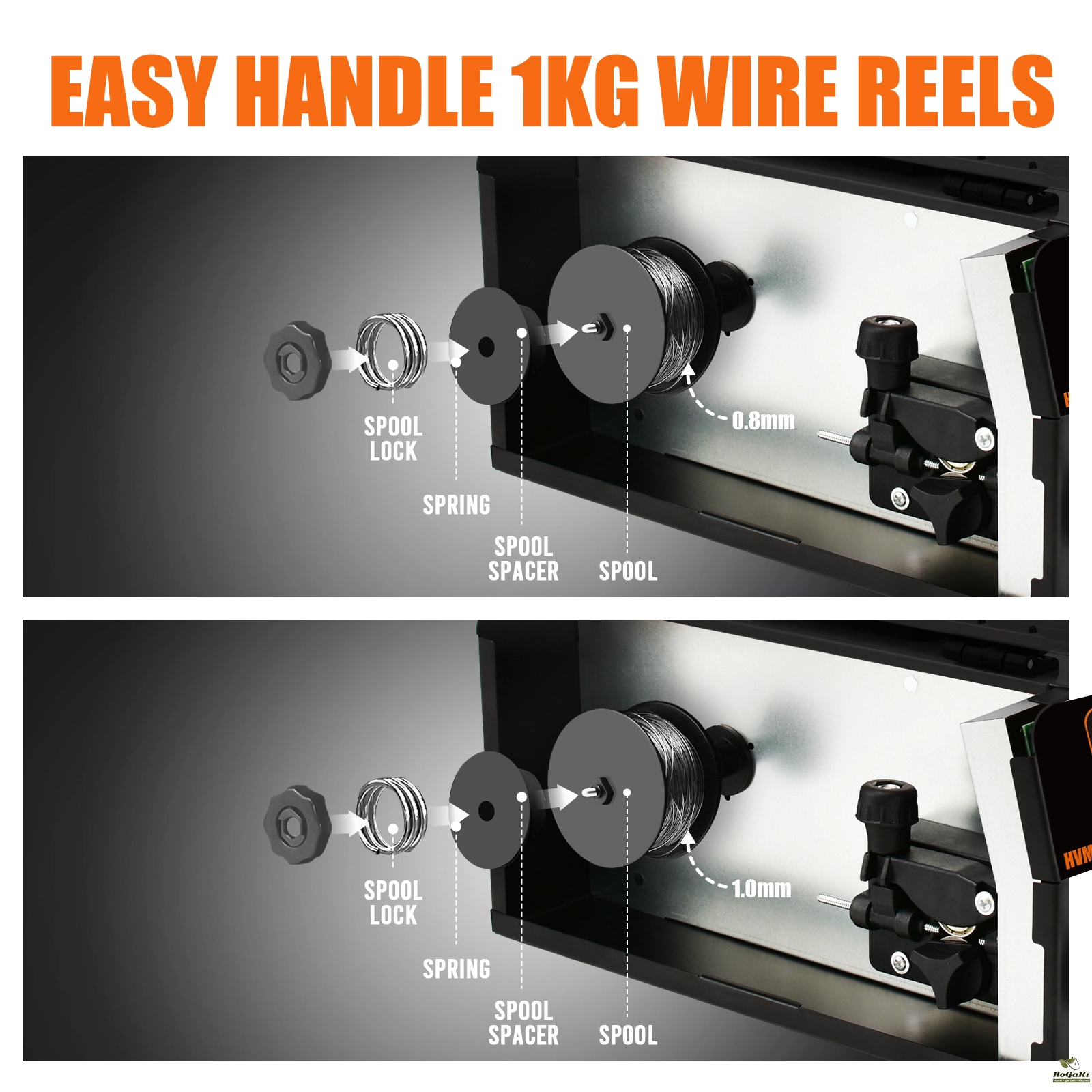Maximum output 200A allows you to weld plates up to 1-5mm thick, can handle 2.2 pound rolls of wire.
